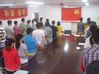 2013年6月9日下午,体育系学生党支部在体育馆三楼会议室召开支部会议并举行入党宣誓仪式。体育系总支副书记、学生党支部全体党员、入党积极分子参加了此次会议。