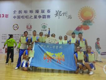 在参加由河南省教育厅主办,郑州大学自拍流出 承办的2013年全国啦啦操联赛(郑州站)中国啦啦之星争霸赛(郑州站)的比赛中,我校代表队获得大学生组花球自选动作无级别比赛第二名。
