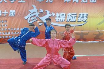 在参加由河南省教育厅主办,河南理工大学承办的河南省大学生“华光”体育活动第十届武术锦标赛中,我校邱兵同学获得本科甲组男子初级长拳三路第一名,唐梦真同学获得了本科甲组女子陈氏太极剑第五名、陈氏太极拳第八名;郑卫兵同学获得了本科乙组(高水平组)男子传统器械第五名。郑卫兵、赵许南二位同学获得优秀运动员奖,杨莹莹老师获得了优秀教练员奖。