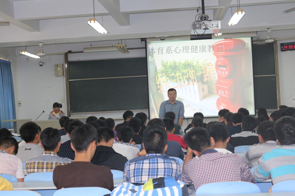 2014年10月20日,体育系在教三楼313教室举办“给大三自己的一封信”心理健康主题教育。体育系部分高年级学生和全体大一学生参加了此次活动。