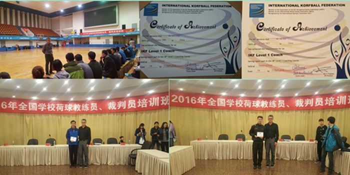 2016年4月15-17日,我院贺伟、马丁二位教师在天津科技大学参加全国学校荷球教练员培训班,并荣获国际一级教练员证书。本次培训班由中国大学生体育协会主办,亚洲荷球协会协办,邀请国际荷球总会(IKF)副主席、亚洲荷球联盟(IKFAsia)主席、国立台北教育大学黄英哲教授亲自授课,培训班分为课程理论培训、荷球战术、技术与体能训练演示、裁判员实习,教练、裁判员总结研习等内容,经考核合格后颁发“国际荷球教练员”证书。