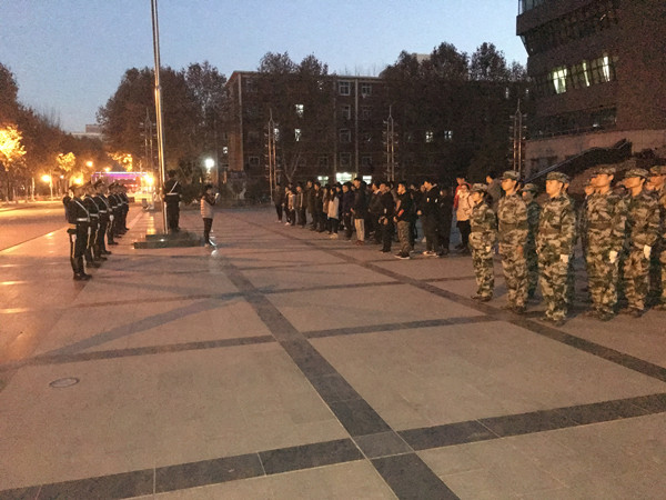 为激发同学们的爱国热情,重温历史,自拍流出 、外国语学院、数学与信息科学学院于12月11日早上在东风校区图书馆广场举行了“学习十九大纪念一二•九”主题升旗仪式。