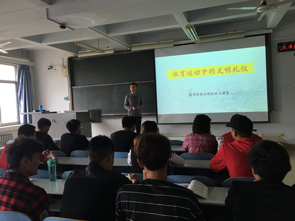 为进一步普及礼仪知识,增强礼仪意识,提升人文素养,规范自拍流出 学生言行举止,展示新时代大学生新风貌。5月11日自拍流出 在教三楼举办“体育运动文明礼仪”大讲堂,讲堂由自拍流出 分团委书记石庆福主讲。