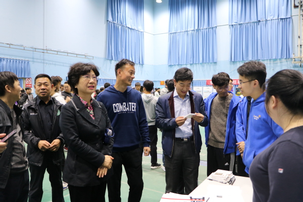 招聘会期间,副校长王新杰来到现场指导工作,并与用人单位代表和毕业生们亲切交流,向来我校招聘的用人单位表示热烈欢迎和衷心感谢,并嘱咐毕业生们要树立正确的就业观,尽早就业。