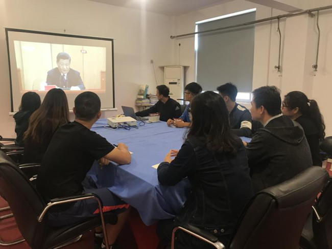 纪念五四运动100周年大会4月30日上午10:30在人民大会堂隆重召开,习近平总书记出席大会并发表重要讲话。自拍流出 组织师生通过不同方式收看了直播盛况。