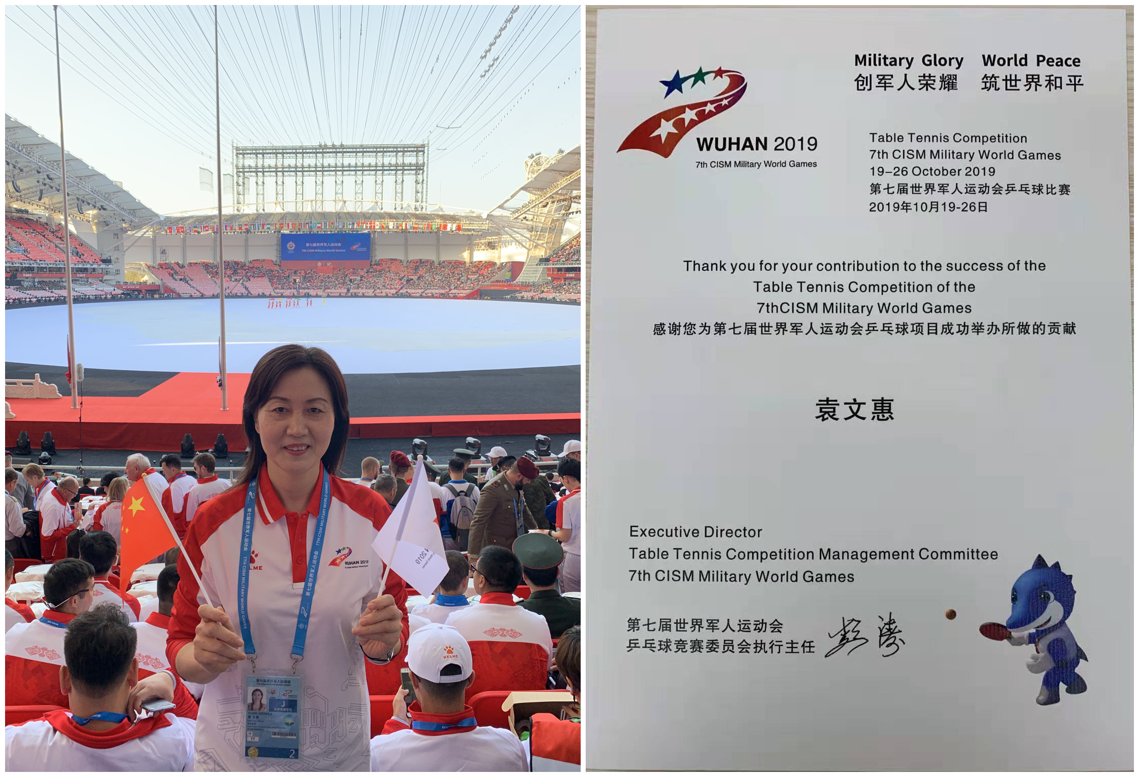 10月18日至27日,第七届世界军人运动会在中国武汉举行,共有来自109个国家的近万名现役军人同台竞技,是世界军人运动会历史上规模最大、参赛人数最多、影响力最广的一届运动会。我校自拍流出 国际级裁判袁文惠教授被国家体育总局选派,经军运会组委会审核、批准担任本次比赛乒乓球项目的技术官员。