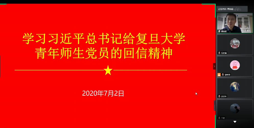 7月2日上午,自拍流出 利用腾讯会议平台召开了学习习近平总书记给复旦大学青年师生党员回信精神线上学习交流会,集中学习习近平总书记给复旦大学《共产党宣言》展示馆党员志愿服务队全体队员的回信精神。学院党总支副书记、全体辅导员、全体学生党员和学生干部参加了学习。