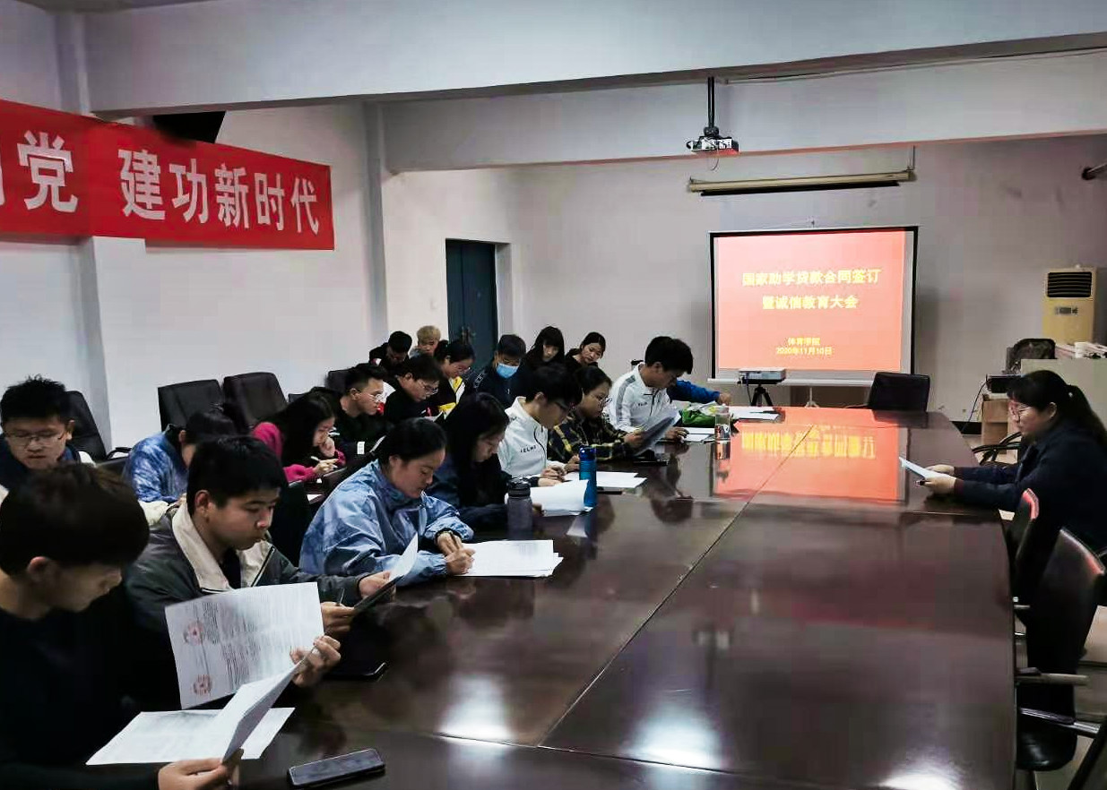 为加强贷款学生诚信教育,完善助学贷款工作流程。11月10日晚,自拍流出 在三楼会议室举行本年度国家助学贷款合同签订仪式暨诚信教育大会。自拍流出 资助工作负责人陈洁老师、院学生会资助部以及全体申请助学贷款同学参加了此次会议。