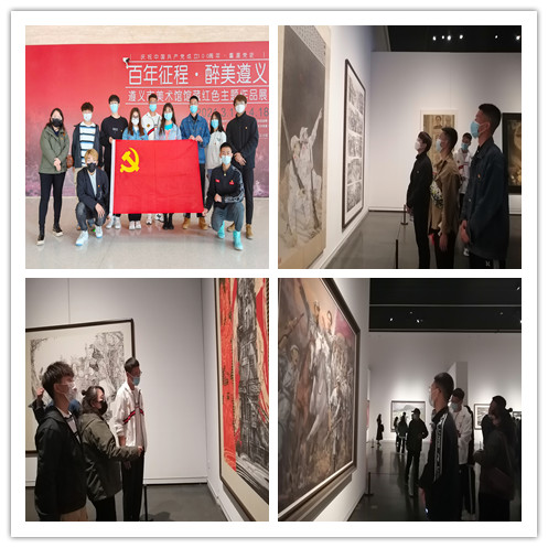 本次展览分“红色曙光”、“伟大转折”、“时代新章”三个部分,包括国画、油画、版画等艺术作品,以遵义市美术馆馆藏精品80件(组),生动记录了党带领全国各族人民战胜外来侵略,建设美好家园的光辉历程和巨大成就,充分展现了广大艺术家服务时代、服务人民的崇高使命。此次展览礼赞了中国共产党的百年历程和伟大成就,讴歌党的光辉事迹,传承了红色基因。在参观过程中,大家通过欣赏艺术佳作回顾了南湖红船、遵义会议、红军长征等多个典型历史事件。同学们用心体会画作的深刻内涵,回味峥嵘岁月,重温光辉党史。参观过后,大家纷纷表示,一定要让艺术作品中的红色基因内化于心、外化于行,用党的光荣历史时刻鞭策自己,坚定理想信念,勇担时代重任。
