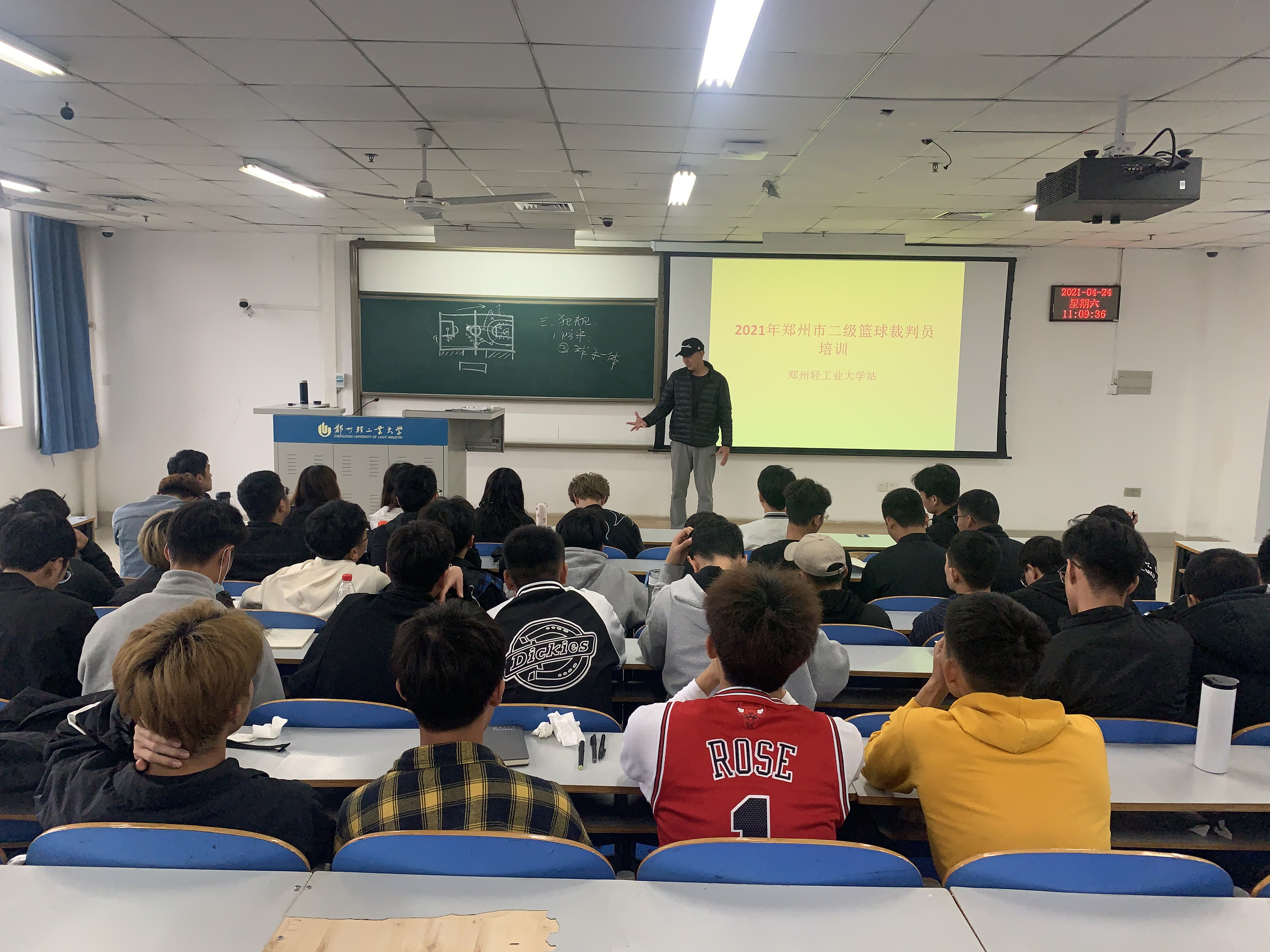 为帮助同学们提升专业技术水平,4月24日,自拍流出 邀请郑州市篮球协会来到学校开展国家二级篮球裁判员培训活动。自拍流出 学生会组织我校50余名学生参加了此次培训活动。