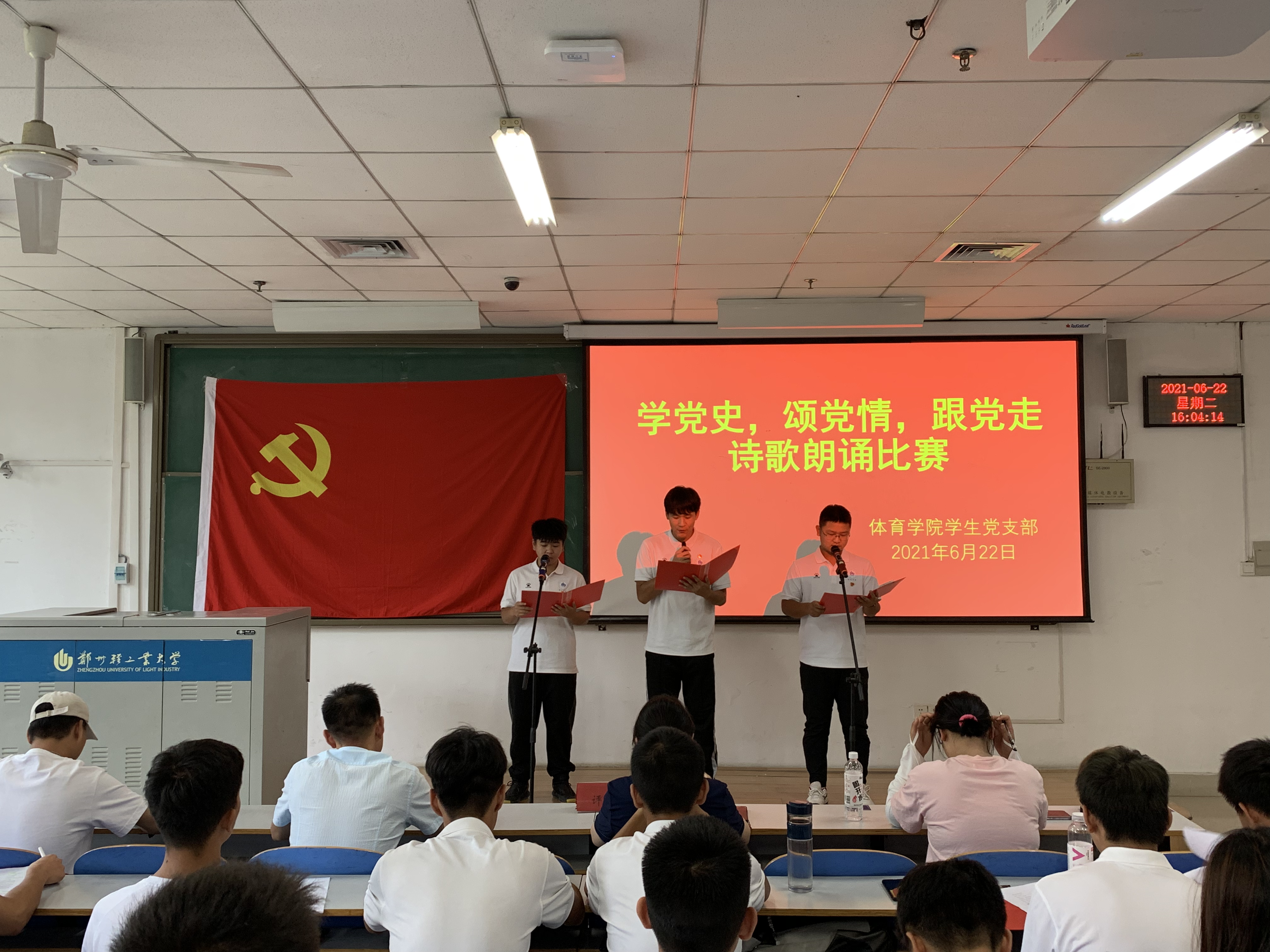 为营造党史学习氛围,提升党史学习教育实效,6月22日,自拍流出 学生党支部在科学校区三教楼103举办了“学党史 颂党情 跟党走”诗歌朗诵比赛党史学习教育主题党日活动。自拍流出 学生党支部全体党员和入党积极分子参加了此次活动。
