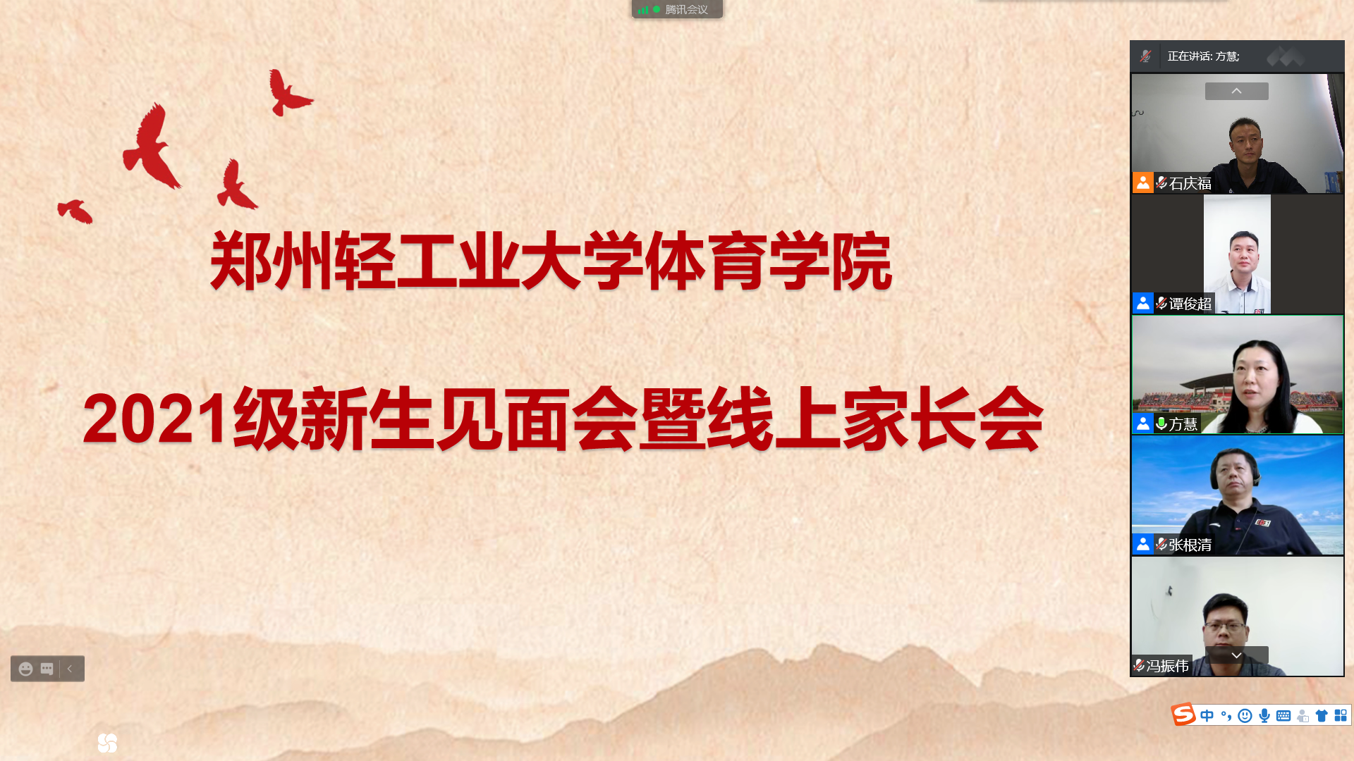 9月8日下午,体育学院利用视频会议的形式召开2021级新生见面会暨新生家长会。体育学院领导班子、专业教师代表、辅导员及2021级全体新生参加了会议。