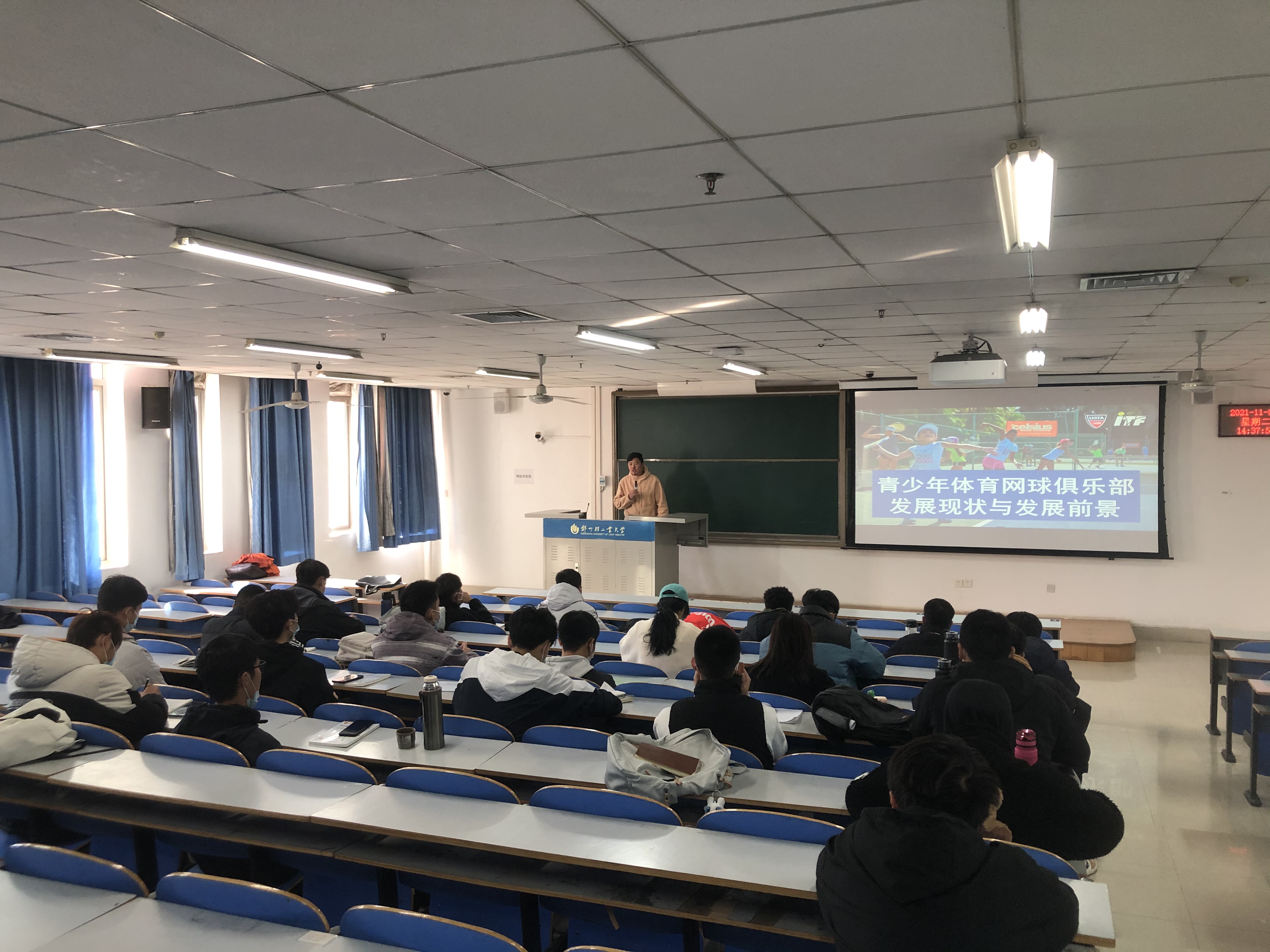 119日下午,自拍流出 在科学校区三教楼207举办大学生就业创业大讲堂,本次大讲堂的主题是“青少年体育俱乐部的现状与发展前景”,特邀请自拍流出 2007级优秀校友、河南世航体育赛事策划有限公司创始人、总经理黄世航来校为师生作报告。