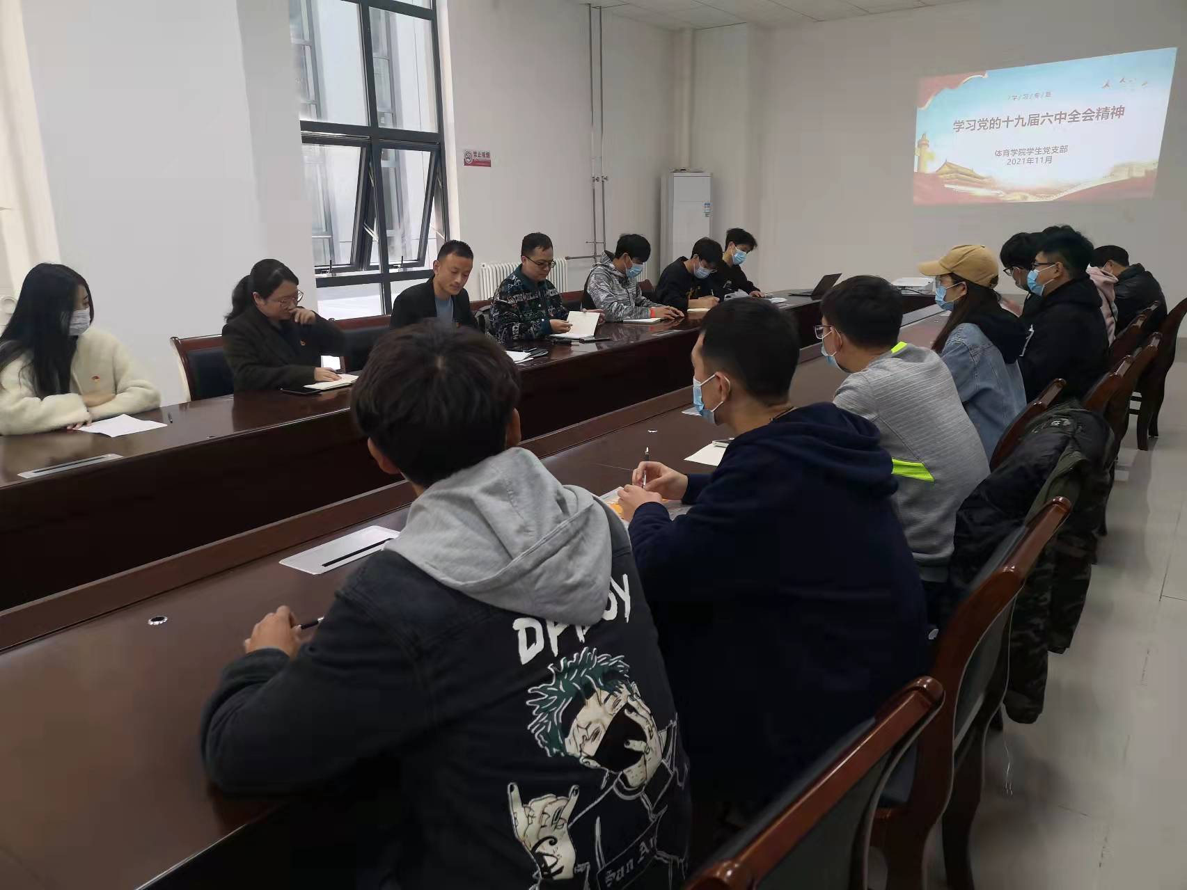 为了深入学习贯彻党的十九届六中全会精神,引领全体学生党员“听党话 跟党走”,11月18日中午,自拍流出 学生党支部在体育馆会议室召开党的十九届六中全会精神学习会。自拍流出 学生党支部全体党员和党员发展对象参加了此次会议。
