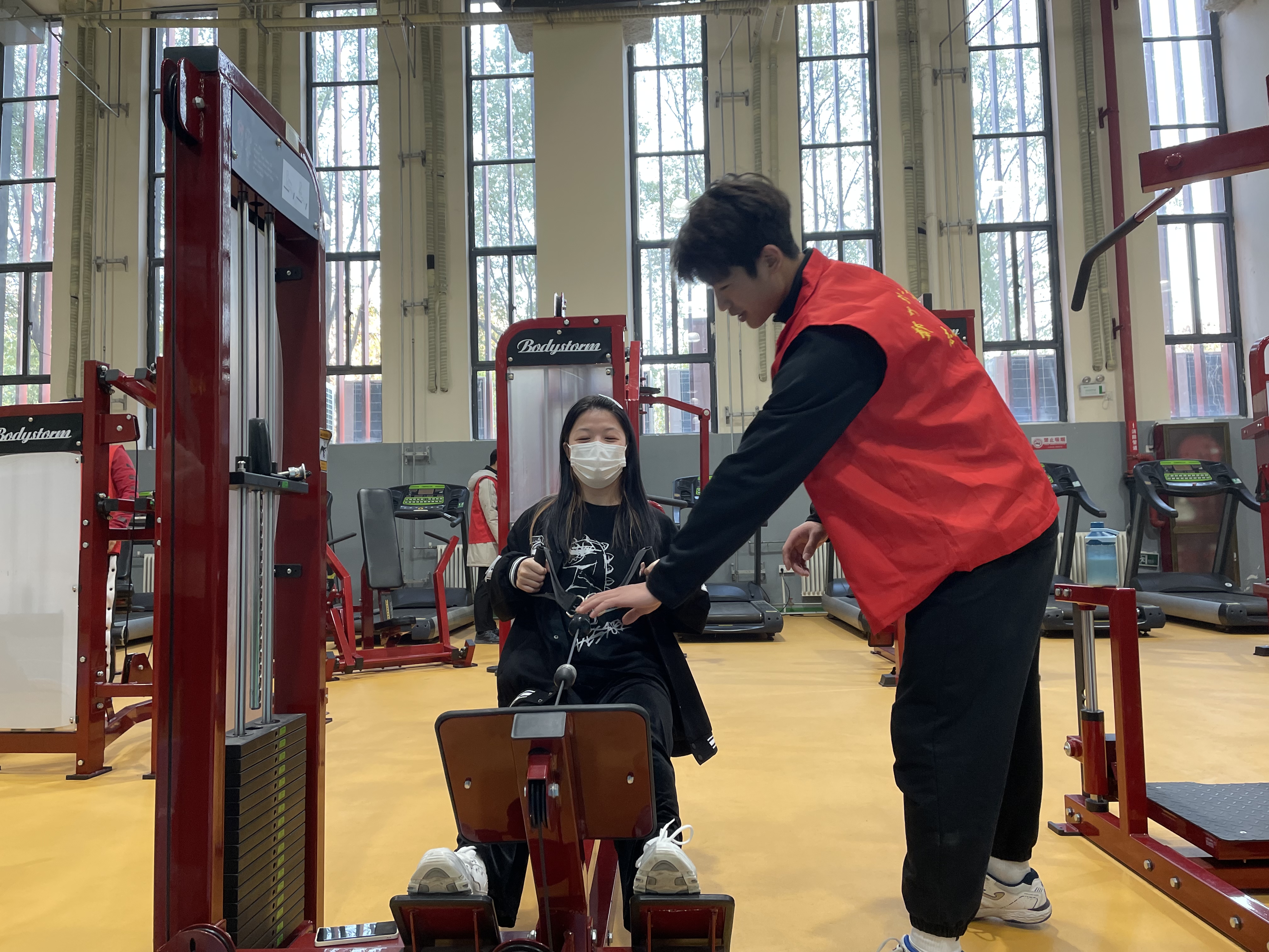 活动中,志愿者们指导同学们合理、安全使用健身器材,帮助同学们在安全训练的前提下减脂增肌,进行体形塑造。志愿者们采取循环渐进的方法,由简到繁的讲解,帮助同学们纠正错误动作,并针对不同健身目的和需求同学们提出具体健身方案,确保大家科学、安全健身。现场的健身爱好者们认真聆听志愿者们的讲解,仔细观看志愿者们的动作示范,深入了解了健身过程中器械使用、安全、负荷、强度、保护等知识。