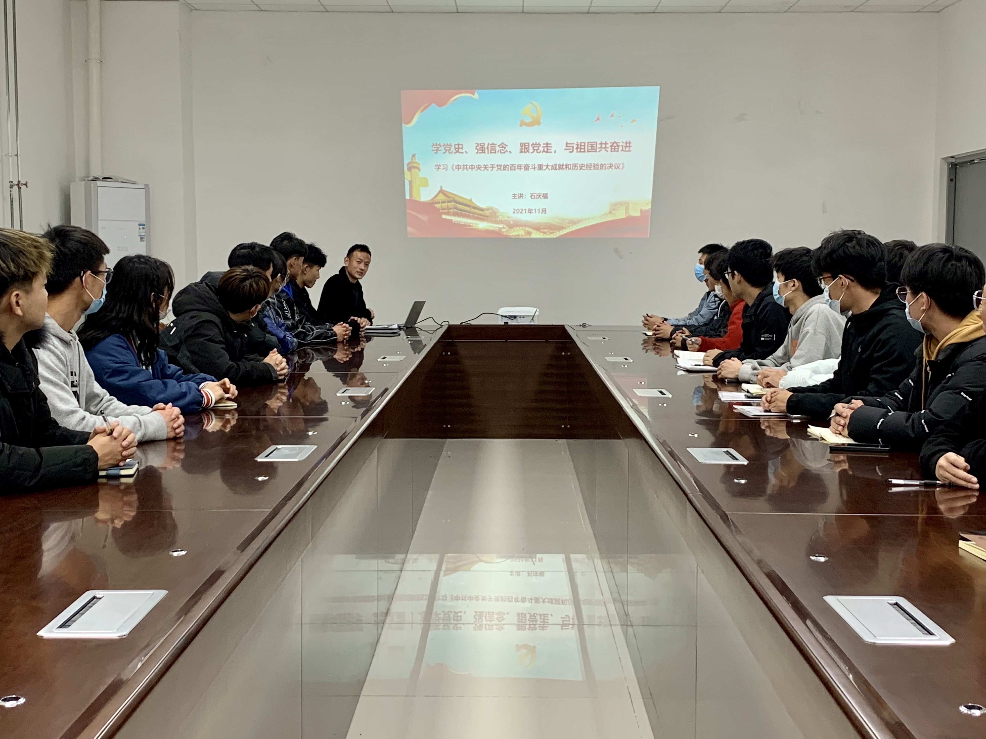 为深入学习贯彻党的十九届六中全会精神,引导广大青年学子坚定理想信念、牢记初心使命,12月7日,自拍流出 在科学校区体育馆会议室开展“学党史、强信念、跟党走,与祖国共奋进——学习党的十九届六中全会精神”主题宣讲活动。本次活动由校“青年讲师团”成员、自拍流出 团委书记石庆福主讲,自拍流出 团委委员、各团支部委员和团学骨干参加了此次活动。