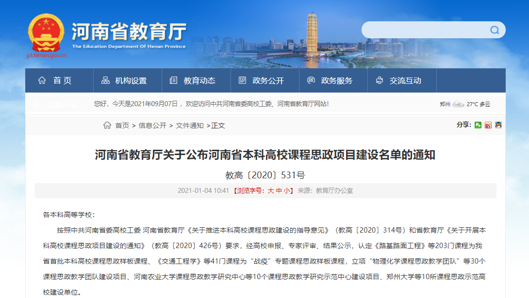 河南高等教育教学改革研究与实践项目成果展示二:大学体育课程荣获河南省本科高校课程思政样板课程