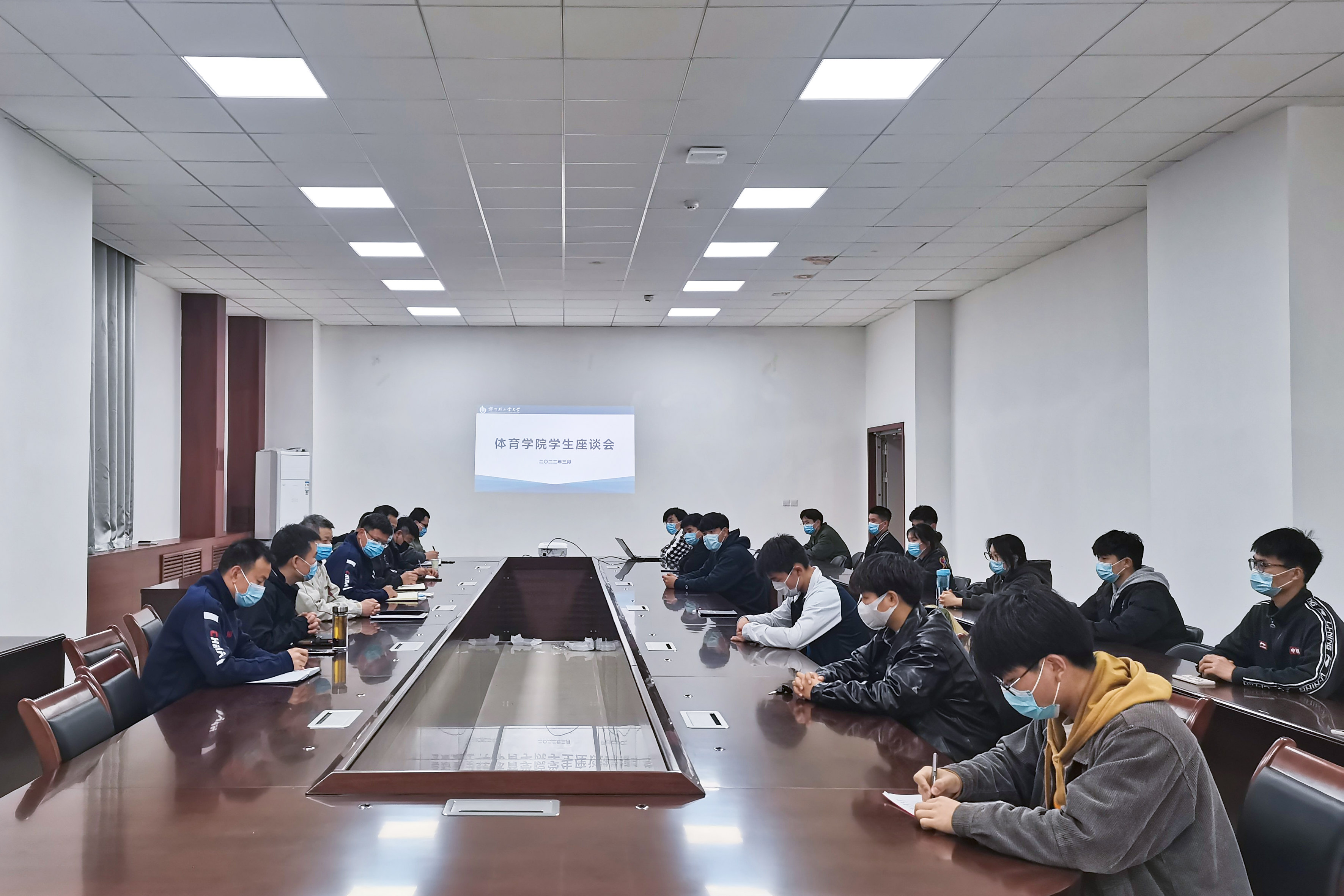 为深入了解学校封闭管理期间学生的思想动态、心理状况和学习生活情况,积极做好疫情防控等有关工作,3月31日,自拍流出 在体育馆会议室组织学生代表召开座谈会。学院党总支书记张根清、副书记谭俊超、全体辅导员、班主任及各年级学生代表参加座谈会。会议由学院党总支副书记谭俊超主持。