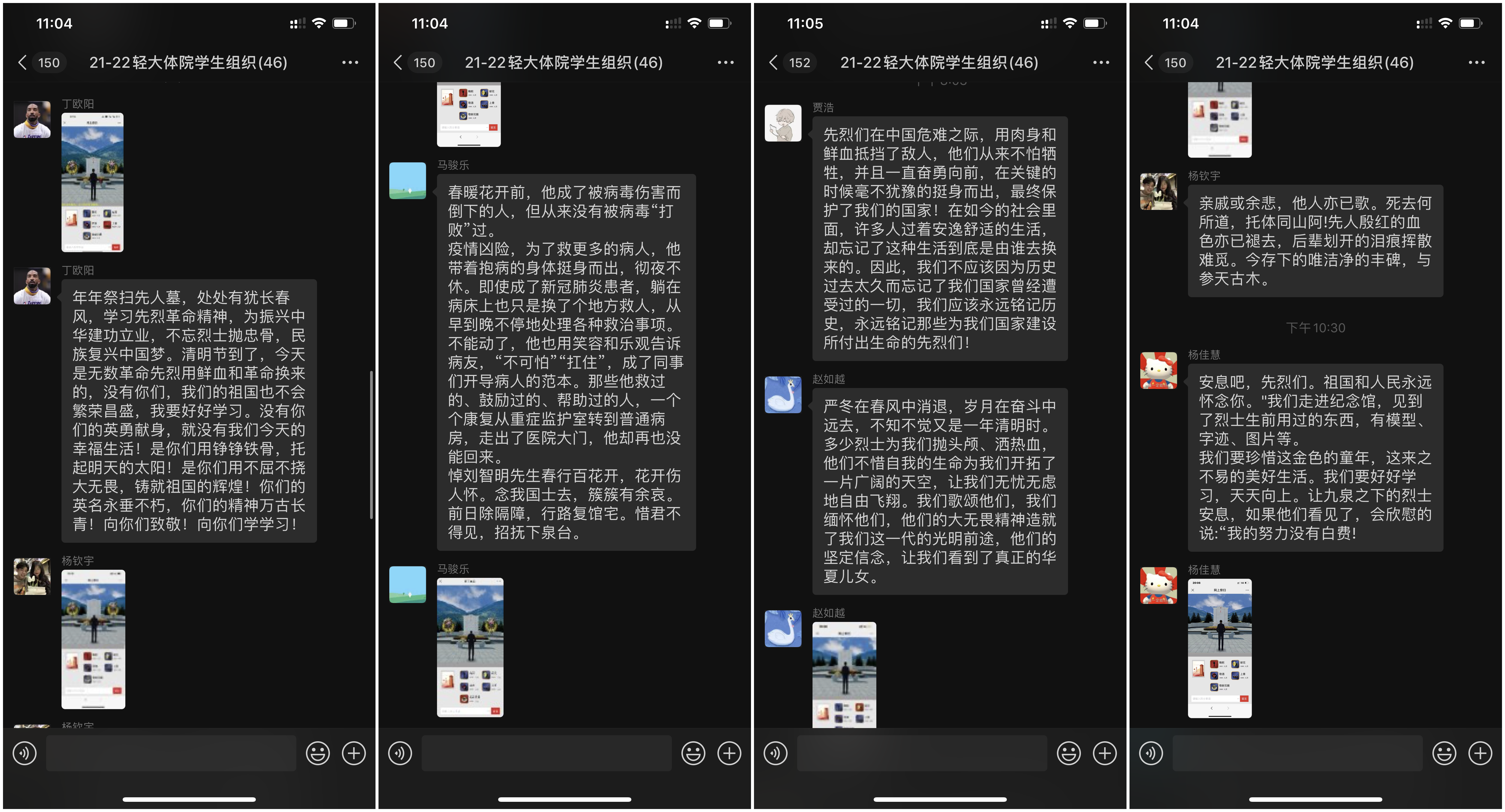 为了加强爱国主义教育,缅怀先烈,铭记历史,4月5日,体育学院团委组织各班级团支部开展“网上祭英烈,清明云追思”主题团日活动。