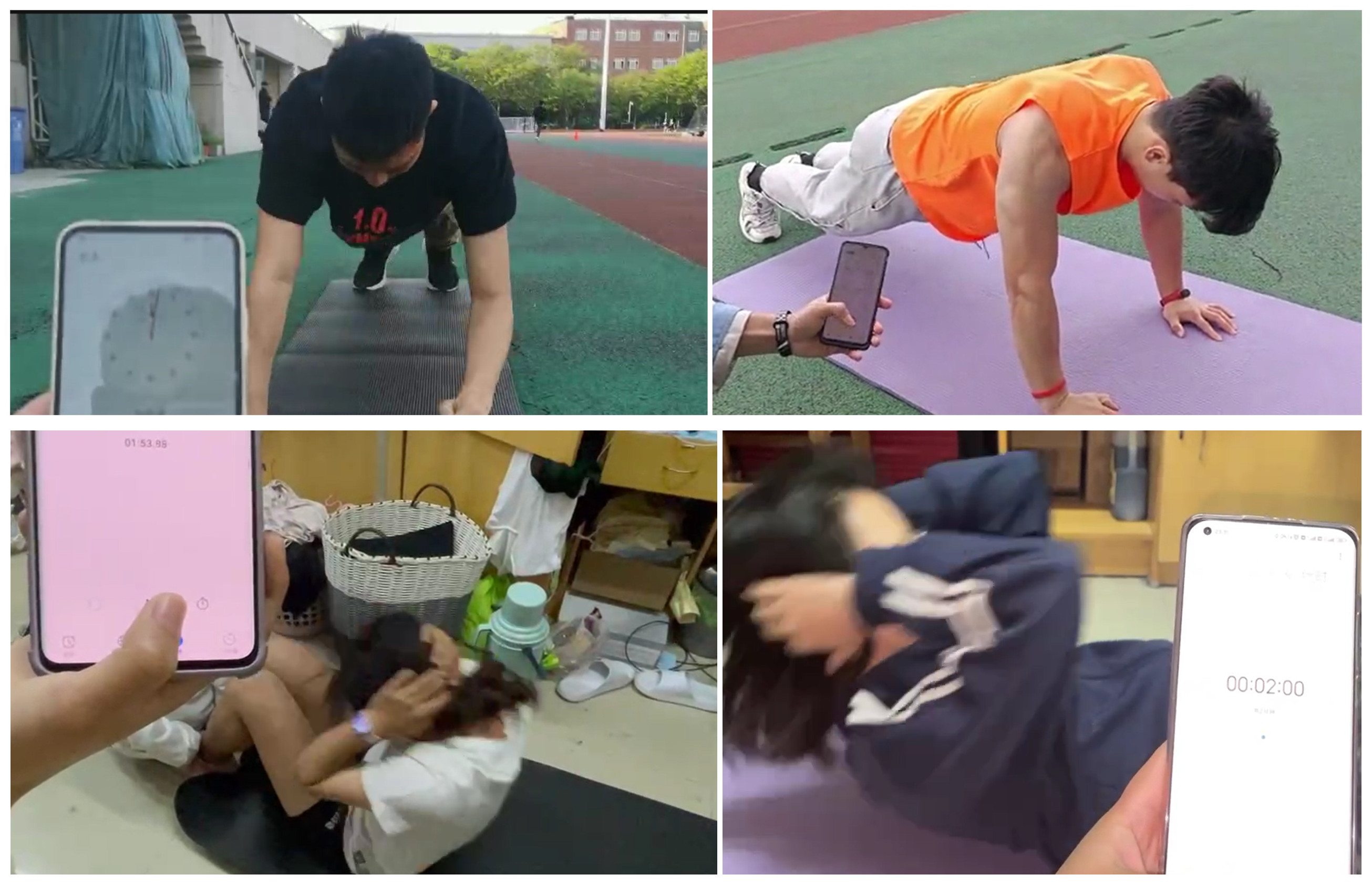 本次比赛由校团委、校体委主办,自拍流出 团委、校学生会承办,两校区各学院共计160名同学参加了此次比赛。本次比赛分为男生两分钟手肘交替,女生两分钟仰卧起坐两个项目。开赛以来,同学们积极踊跃报名参赛。本次体能挑战赛采取视频评审方式进行,同学们打卡拍摄视频,以规定时间内完成标准完整动作的次数进行排名。比赛期间,同学们按照活动要求参与打卡、规范录制视频,为赢得比赛而拼尽全力,努力做到最好最强,充分展现轻大学子的活力与激情。