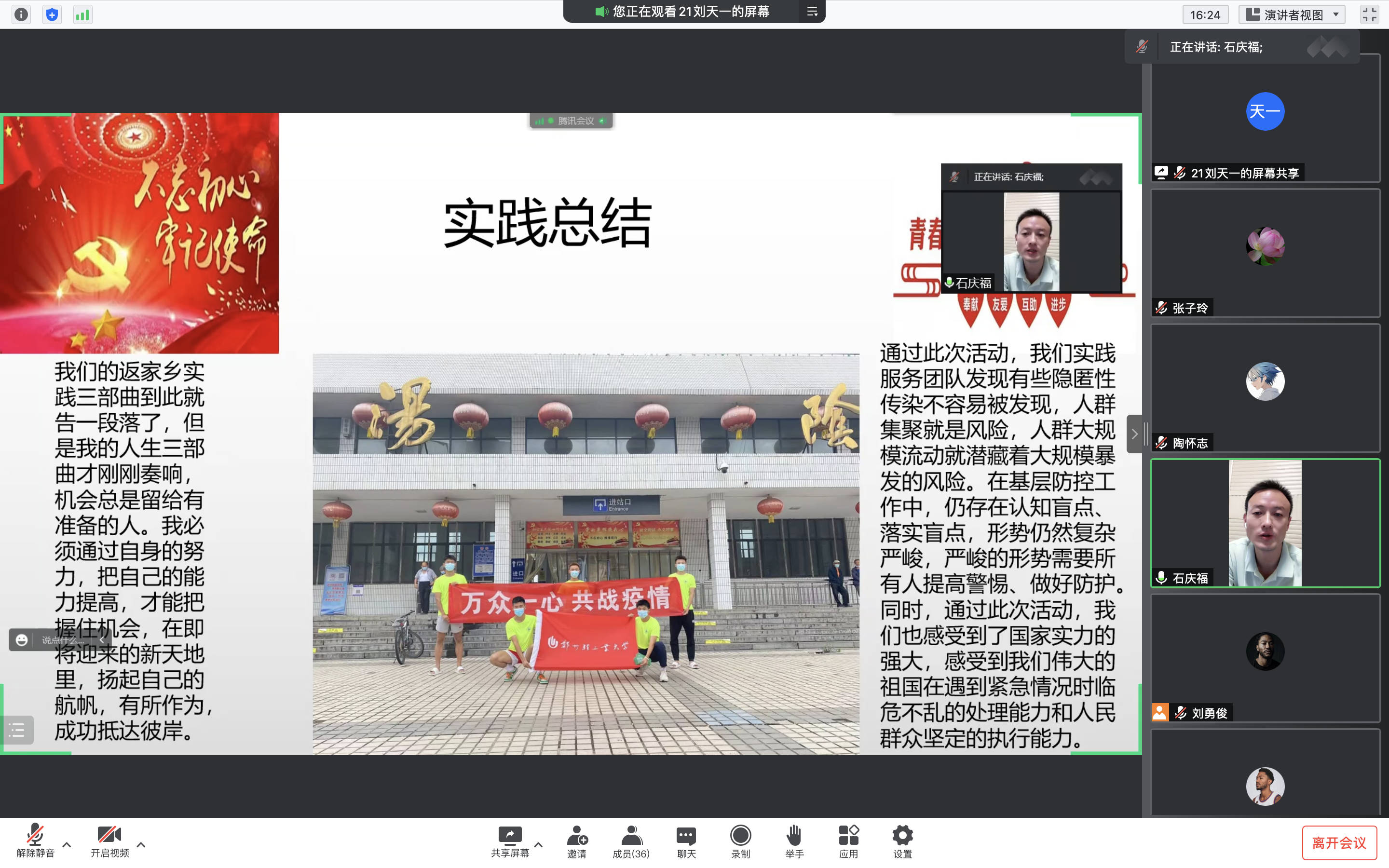 为展示提自拍流出 学子在2022年暑期的社会实践成果,自拍流出 于9月9日晚上通过腾讯会议召开暑期社会实践成果展示线上报告会。本次会议由自拍流出 团委书记石庆福主持,自拍流出 全体大一和大二学生参加了此次会议。