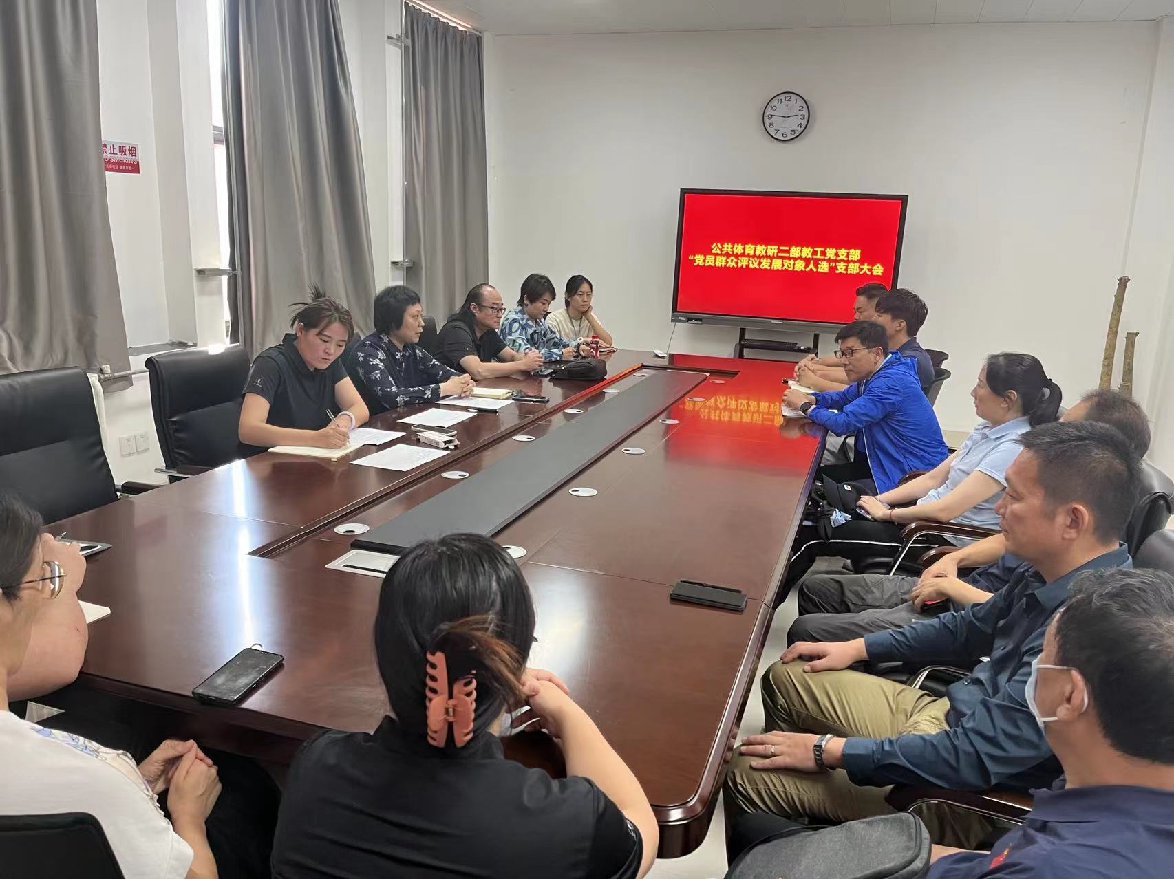 9月29日,公共体育教研二部教工党支部在党员活动室召开“党员群众评议发展对象人选”大会。
