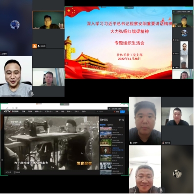 为深入学习党的二十大精神和习近平总书记视察安阳重要讲话精神,11月28日晚7点半,社体系教工党支部通过线上形式召开“深入学习习近平总书记视察安阳重要讲话精神,大力弘扬红旗渠精神”为主题的组织生活会,支部全体党员参加了会议,会议由支部书记冯振伟主持。