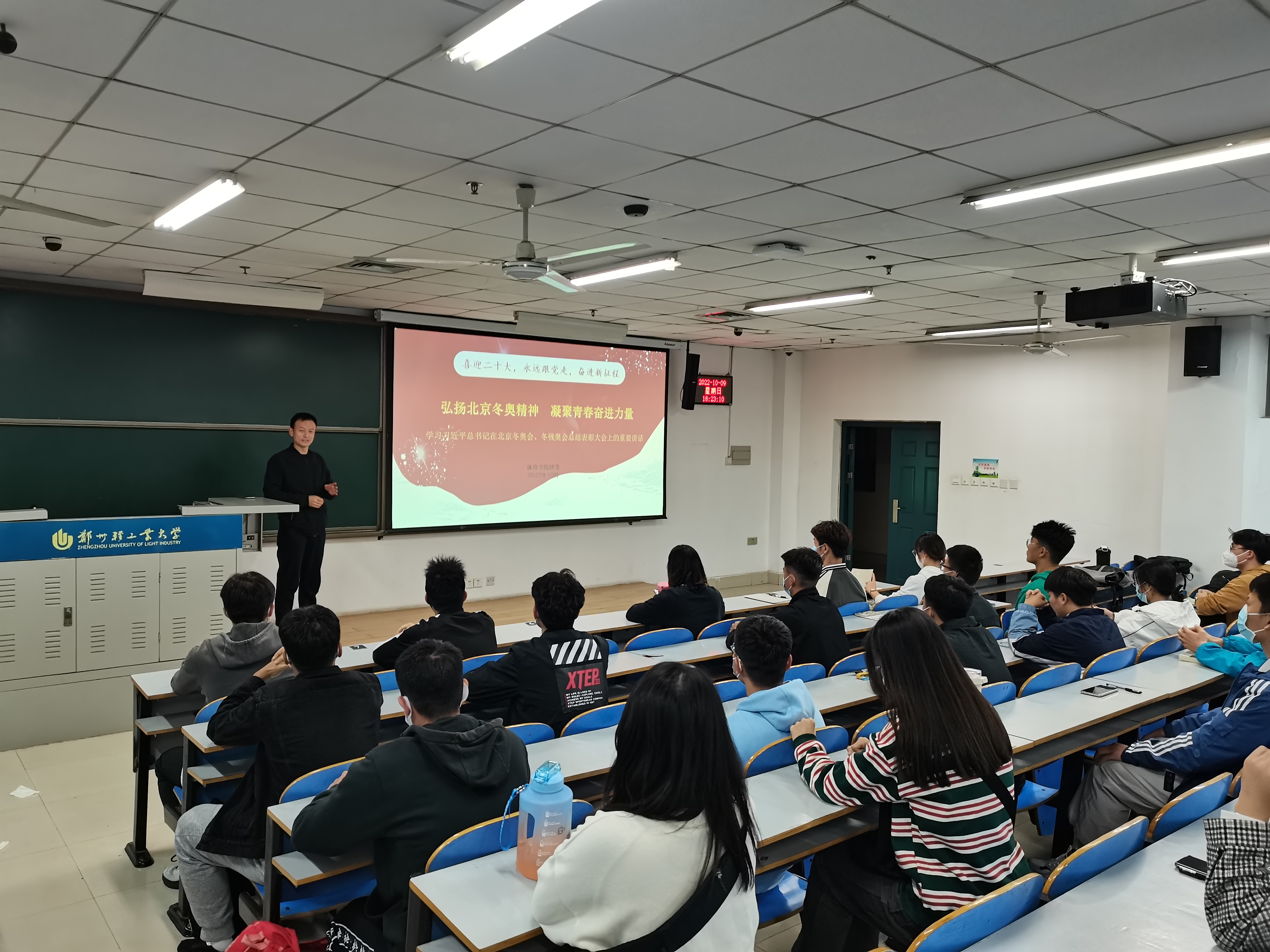 活动中,石老师从北京冬奥会取得的伟大成绩、习近平总书记关于北京冬奥会的重要论述、北京冬奥精神的内涵和北京冬奥精神对团员青年的启示四个方面展开讲述,紧紧围绕习近平总书记重要讲话和北京冬奥精神这一主线,结合北京冬奥会、冬残奥会上的感人故事,生动阐释了北京冬奥精神。石老师鼓励大家认真学习领会北京冬奥精神的深刻内涵,将北京冬奥精神贯彻落实到日常学习生活中,以实际行动诠释北京冬奥精神。他希望团员青年们始终不渝坚持党的全面领导,做好党的后备军,坚持艰苦奋斗、磨炼意志、勇于挑战,努力练好本事,敢于担当作为,奋发建设体育强国。