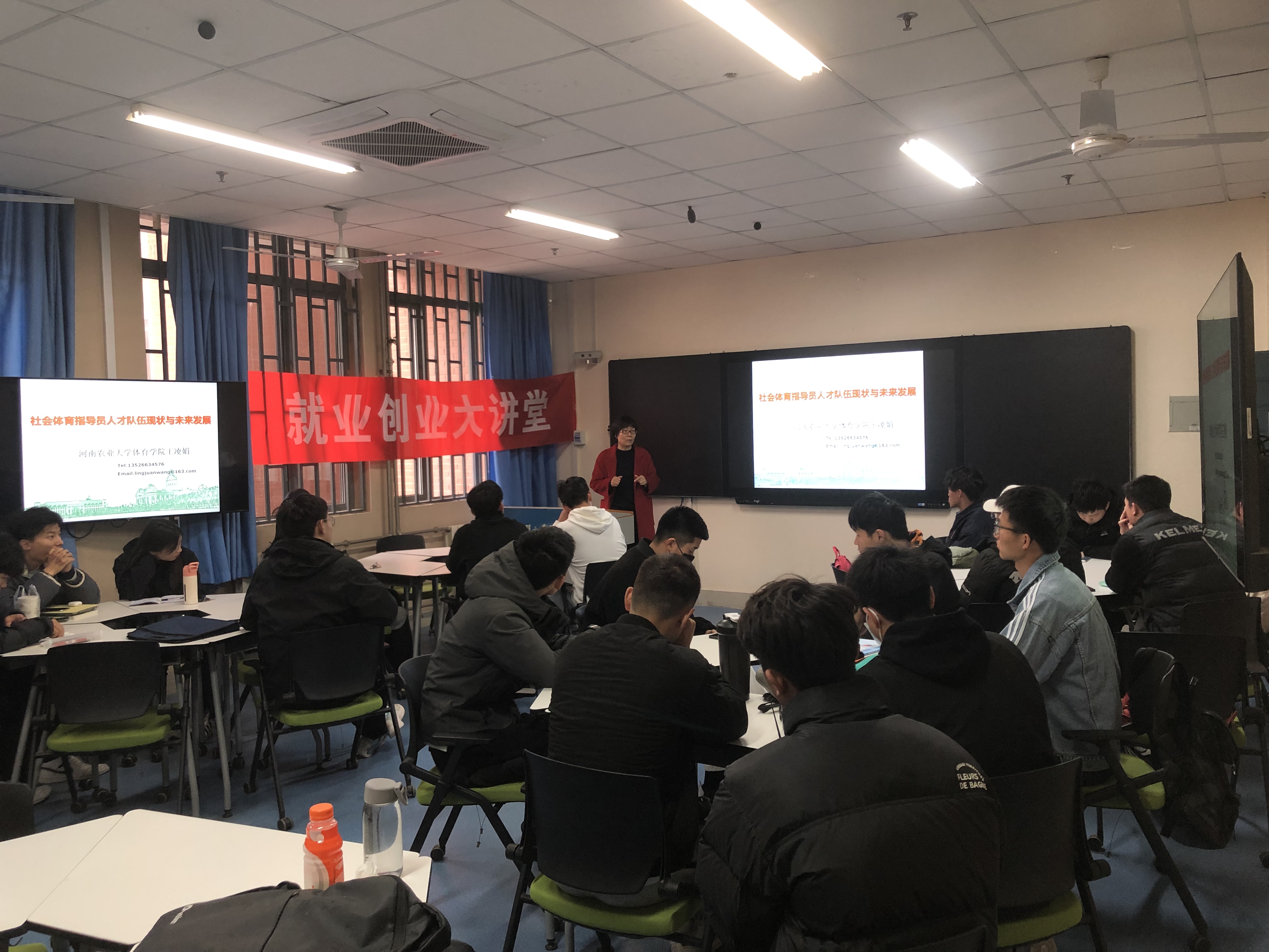 为帮助同学们了解目前社会体育指导员人才队伍现状与未来发展,提升同学们的就业创业能力,3月24日上午,自拍流出 在科学校区一教楼107举办了主题为“社会体育指导员人才队伍现状与未来发展”的就业创业大讲堂活动。本次大讲堂邀请了河南农业大学自拍流出 教师、国家级社会体育指导员王凌娟主讲。