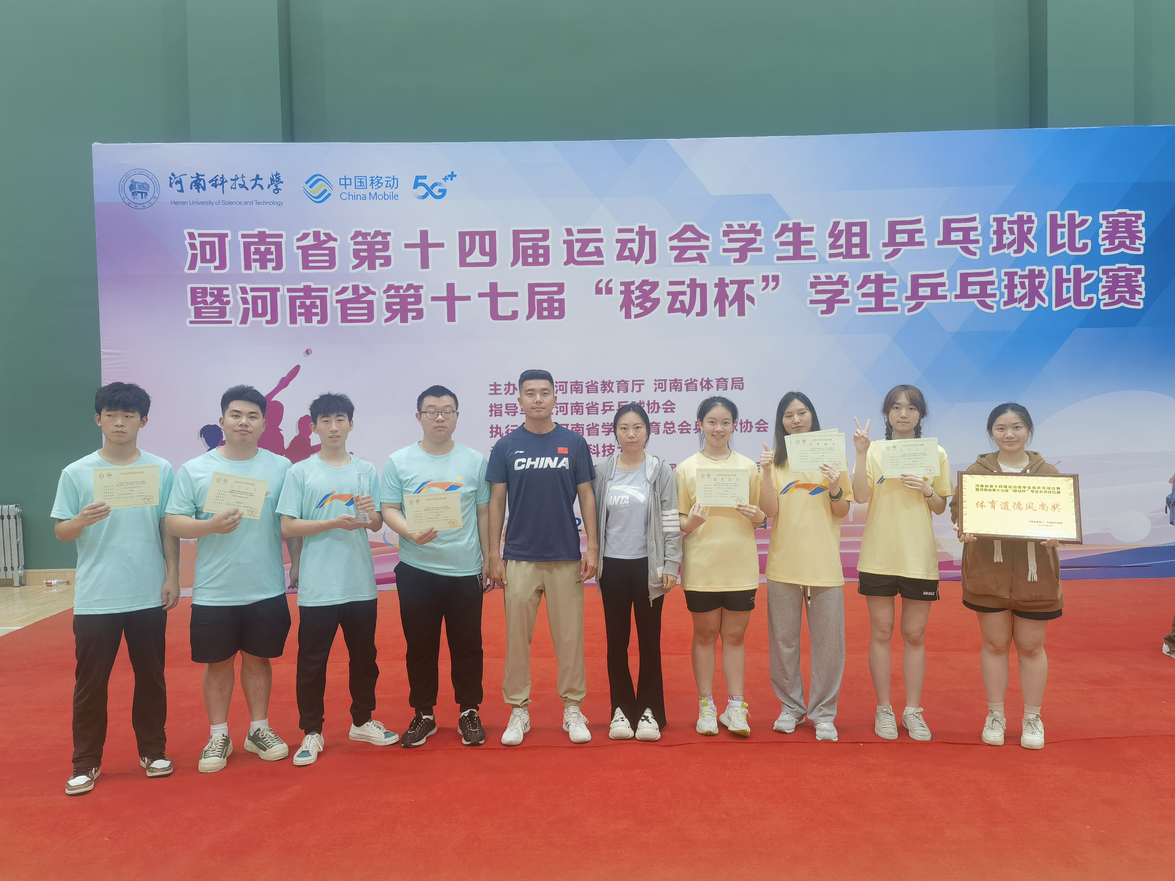 5月28日,河南省第十四届运动会大学生组乒乓球比赛暨“中国移动杯”大学生“华光”体育活动第十四届乒乓球锦标赛在河南科技大学圆满结束,由我校男女共10名运动员/教练员组成的乒乓球队在领队刘振卫的率领下,参加了本科甲组比赛。