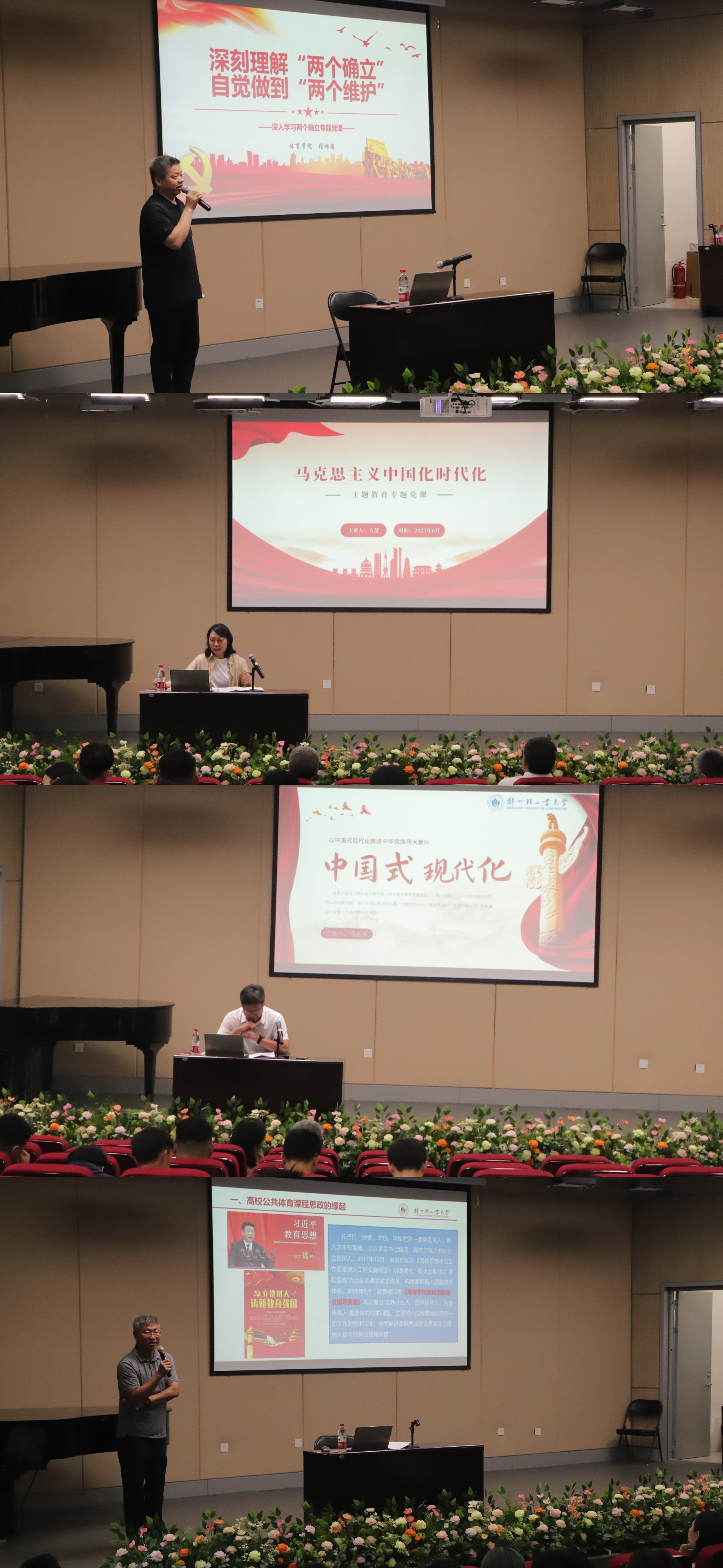 方慧以《马克思主义中国化时代化》为题,围绕马克思主义中国化时代化发展过程、马克思主义中国化时代化新飞跃——习近平新时代中国特色社会主义思想世界观方法论、学习体会——谱写马克思主义中国化时代化新篇章三部分进行阐述。她强调,我们师生要全面贯彻习近平新时代中国特色社会主义思想和党的二十大精神,更好地把坚持马克思主义和发展马克思主义统一起来,坚持用马克思主义之“矢”去射新时代中国之“的”,继续推进马克思主义基本原理同中国具体实际相结合、同中华优秀传统文化相结合,不断谱写马克思主义中国化时代化新篇章,让马克思主义在中国大地上展现出更强大、更有说服力的真理力量。