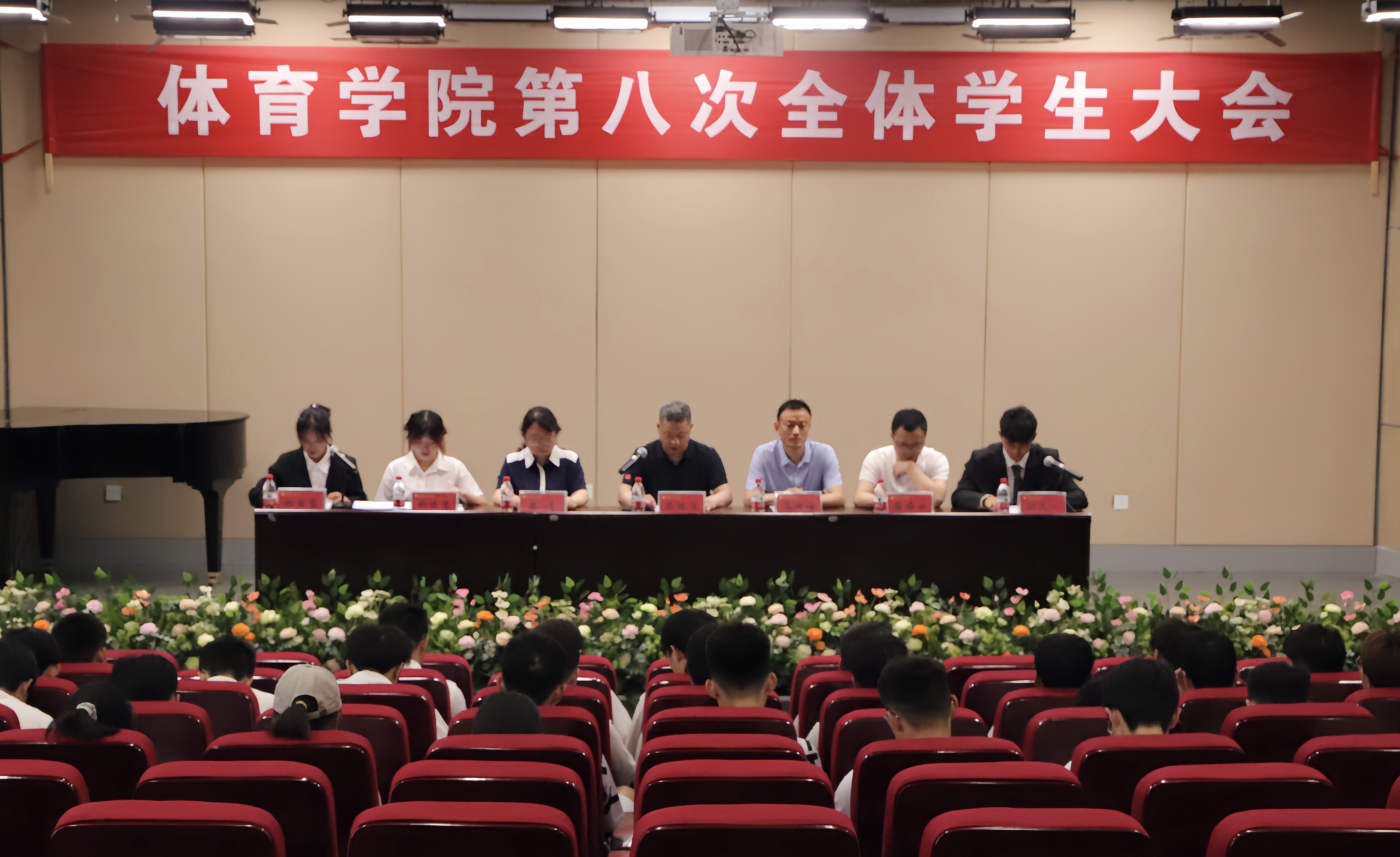 6月14日上午9:00,自拍流出 在科学校区音乐厅召开第八次全体学生大会。自拍流出 党总支书记张根清、院团委书记石庆福、院学工办副主任陈洁、院副科级组织员张峰升、校学生会工作人员韩佳慧及自拍流出 全体学生参加了此次大会。