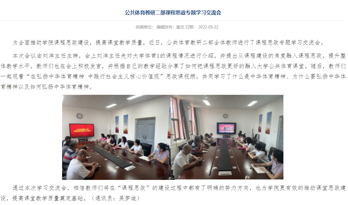 “大学体育”课程思政特色化教学研究示范中心