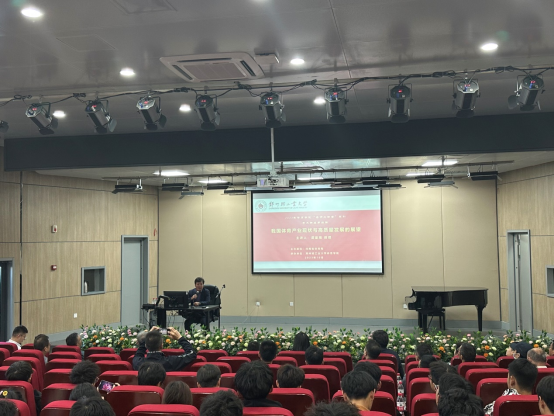 2023年10月22日下午3点,自拍流出 邀请华南师范大学谭建湘教授在科学校区音乐厅,作题为《我国体育产业现状与高质量发展的展望》的报告。学院班子成员及全体师生参加了报告会,出席本次报告会的嘉宾还有河南省体育局产业处处长吕大利、河南省体育局产业处副处长杨航、郑州大学自拍流出 体育新闻与管理系主任邓峰、河南省体育产业研究中心副主任高海朝、河南省形象文化协会会长熊建丽,报告会由院长方慧教授主持。