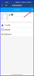 4、手机号录入完成进入个人中心,点击右上角,进入场地预约;