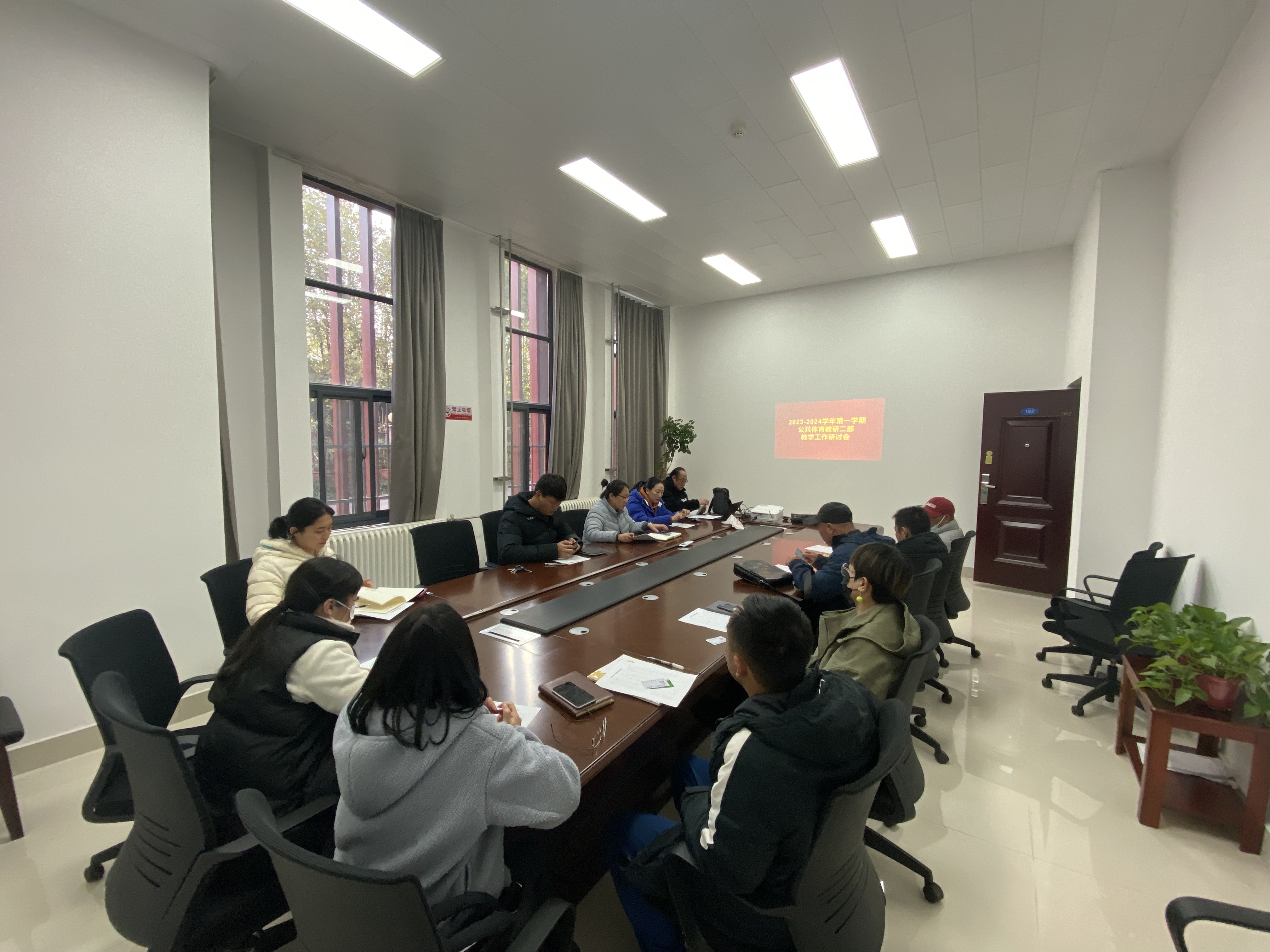 教研会上,李主任首先总结了前期教学工作的基本情况,并针对期中教学检查学生座谈会中提出的问题,带领老师们进行了积极讨论,重点对“如何有效提高学生身体素质”“如何在课堂上科学合理地开展身体素质练习方法”“如何增加课堂练习的趣味性”等问题进行了深入探讨,并提出相应的改进实施方案。