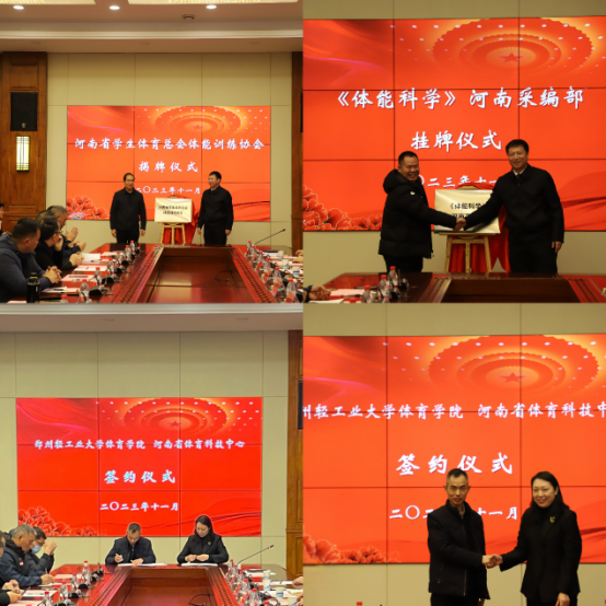 王晏和杨新宇共同为河南省学生体育总会体能训练协会揭牌;韩春远和杨新宇共同为《体能科学》采编部挂牌,同时对《体能科学》成立批文、期刊号、收录方向等情况进行了具体说明。