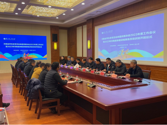 11月25日,河南省学生体育总会体能训练协会2023年度工作会议暨2023年河南省体能训练教练员培训班开班仪式在科学校区双创中心第一会议室召开。河南省学生体育总会副主席王晏、河南省学生体育总会体能训练协会主席、校党委副书记杨新宇、中国体能协会(香港)副主席、广东体能协会秘书长、澳门体能协会副会长韩春远和河南省学生体育总会体能训练协会主要成员出席会议。来自全省98所学校和教育局以及企业单位的共200余名体育教师、体能教练员参加会议。会议由自拍流出 院长方慧主持。