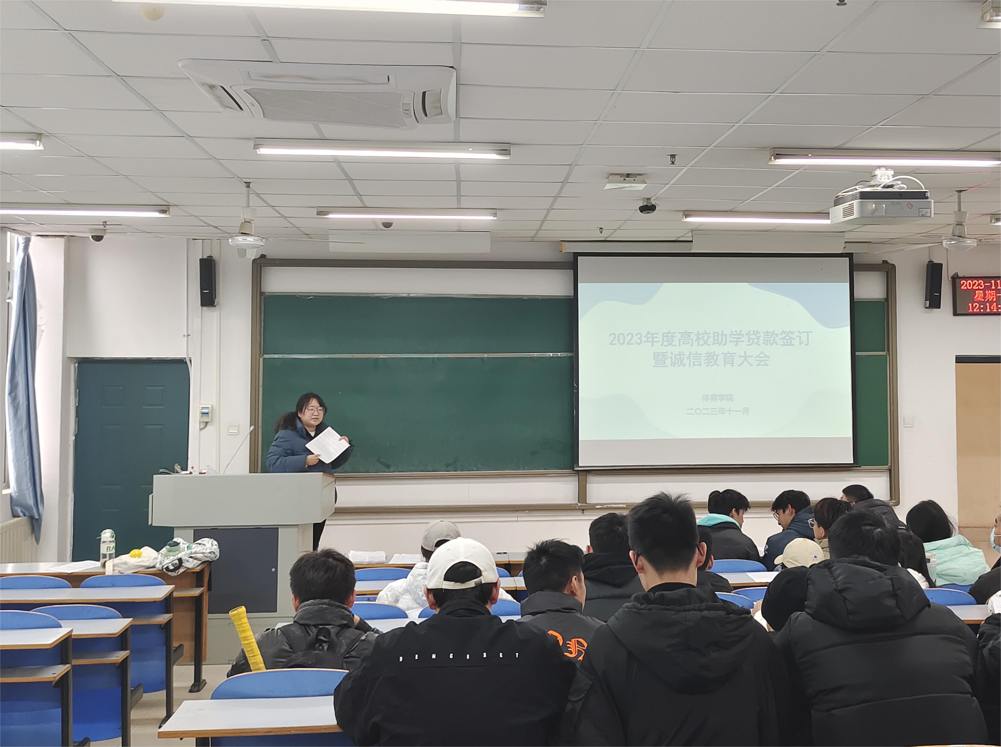 为进一步宣传国家资助政策,增强学生诚信意识,落实好国家助学贷款相关政策,11月10日,自拍流出 在二教楼218教室召开2023年国家助学贷款合同签订仪式暨诚信教育大会,学院资助工作专职老师陈洁及全体贷款本科生、研究生参加了会议。