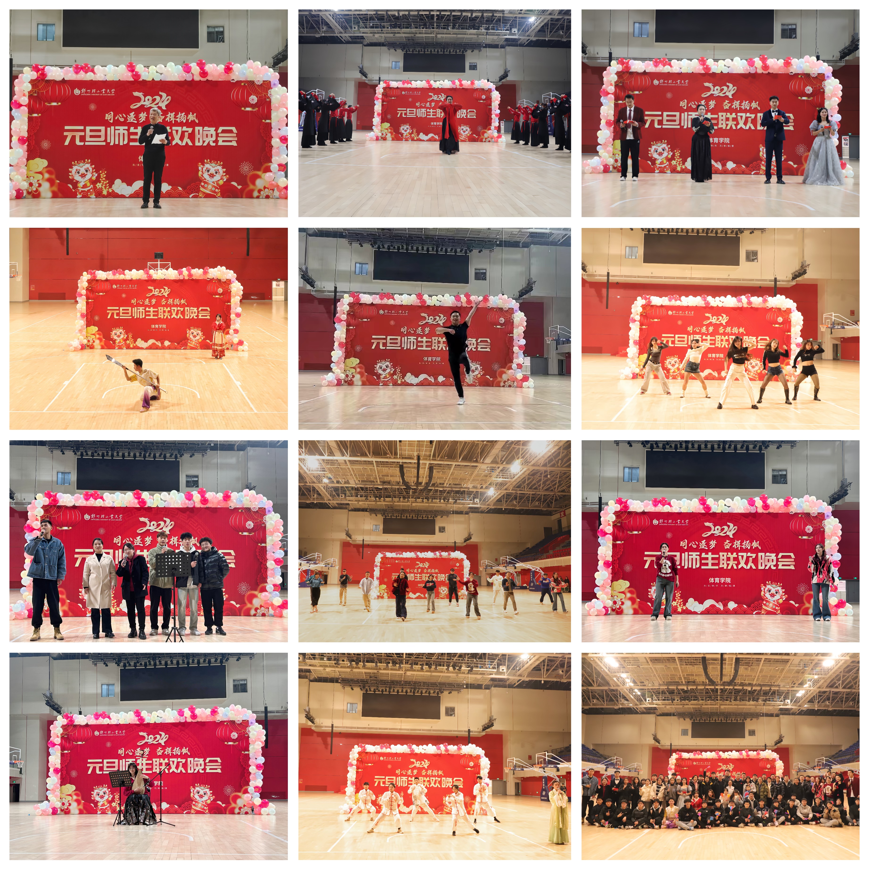 晚会伊始,朱彧书记向全体师生致以诚挚的问候和新年的祝福,寄望共建学院美好未来。整场晚会节目精彩纷呈,形式多样,师生同台演绎,展现出全院师生团结奋进、自强不息的精神。学生歌唱类节目《绅士》《爱如潮水》《世本常态》《消愁》等,用律动的节奏,点燃了青春火焰;老师倾情演唱的《海芋恋》《new boy》,用欢快的曲调,配合着优雅的舞步,唱出了对美好生活的期待;歌曲+武术类节目《赤伶》《少年中国说》等,将歌曲与武术结合,展现出我院学子多才多艺、朝气蓬勃的精神风貌;舞蹈类节目《Fearless》,伴随着跳动的音符演绎着青春的活力;教师竞技健美操《热情之燃》用高强度的动作展现出力量和柔韧之美的完美结合;琵琶演奏《不谓侠》,通过丰富的演奏技巧,给大家带来了一场听觉盛宴;教师代表团队的舞蹈《大学体育3》更是将晚会氛围推向高潮。晚会还设置了游戏互动环节,现场欢笑不断、掌声如潮。
