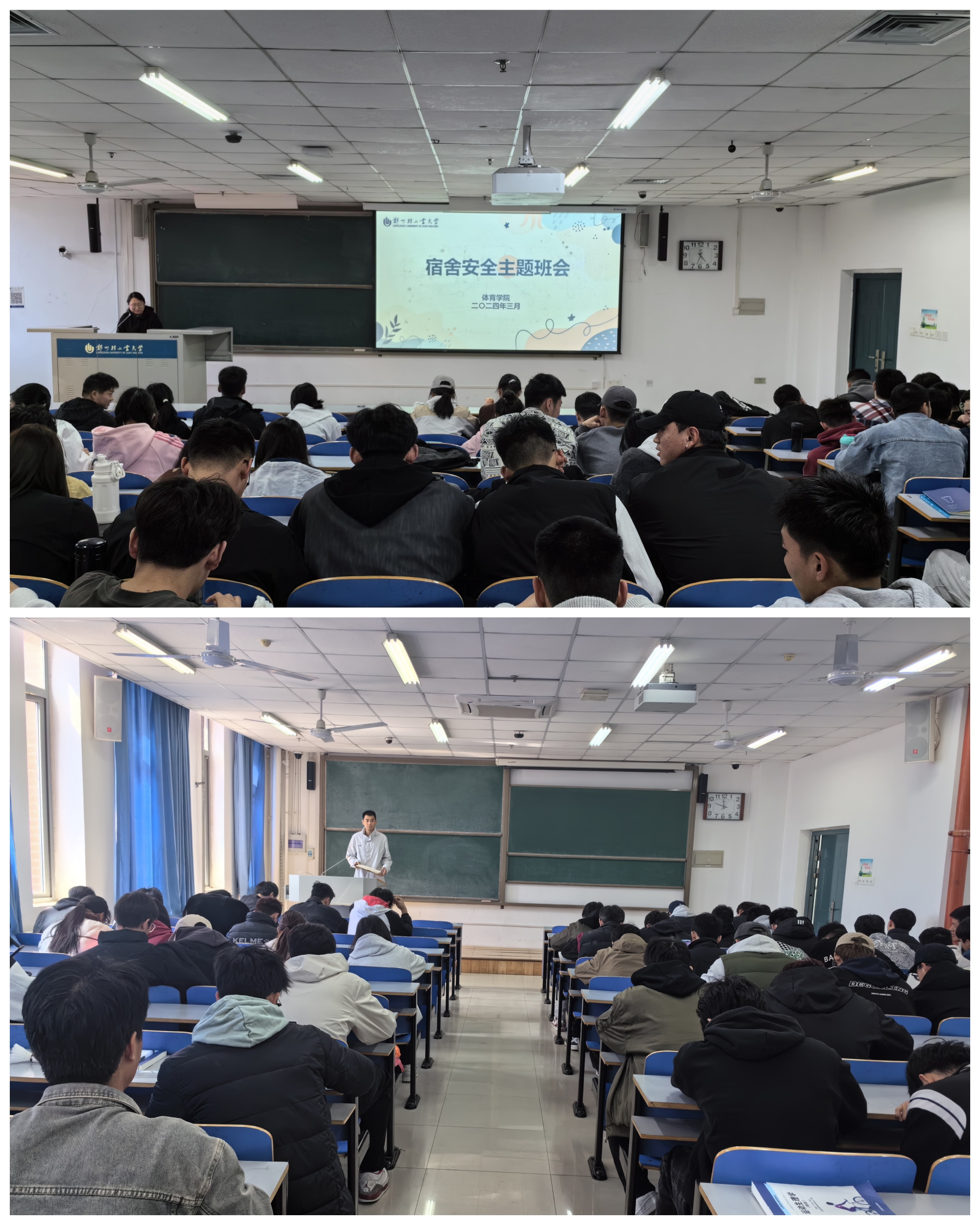 班会上,各辅导员首先结合学校本科教育教学评估迎评工作安排组织学生认真学习《高等学校学生行为准则》《自拍流出 学生日常行为规范》等内容,围绕学生宿舍消防安全、宿舍吸烟危害、人际关系处理等方面进行讲解,重点介绍了大功率电器的种类、宿舍存在安全隐患的不良习惯以及如何养成正确的用电习惯。接着,辅导员带领大家观看学生宿舍火灾案例视频,帮助学生了解高校火灾事故发生的原因和消防逃生知识,增强学生安全防范意识。随后,邀请学生代表分享有关宿舍安全的亲身经历和生活中耳闻目见的相关事例,并与参会同学共同展开讨论,从不同角度提出应对方法。班会结束后,全体辅导员深入学生宿舍,对宿舍卫生及电器使用情况做了仔细检查,并再次向学生强调了宿舍安全有关事宜。