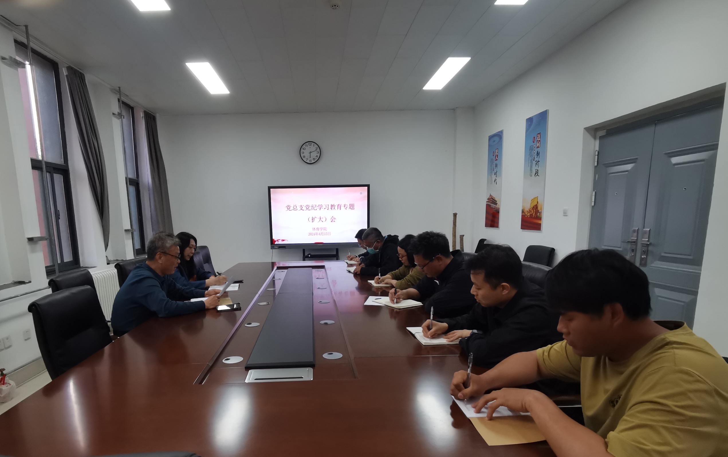 办公楼三楼党员活动室召开党总支扩大会议,安排部署党纪学习教育工作。学院党总支委员、各党支部书记参加会议,会议由党总支书记朱彧主持。