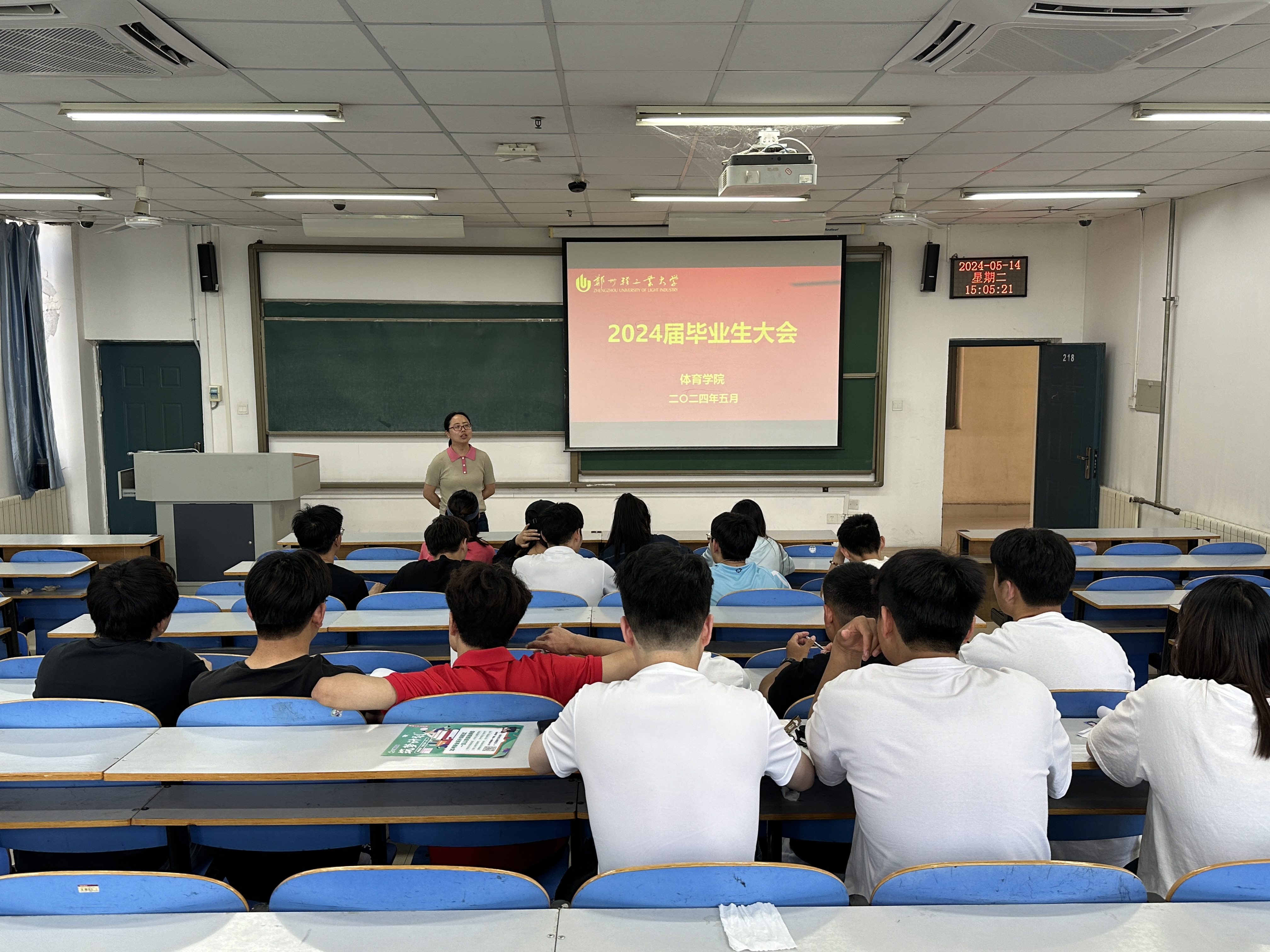 在二教楼218召开2024届毕业生会议。学院党总支副书记王静、就业专职老师李昊轩以及全体毕业生参加会议。