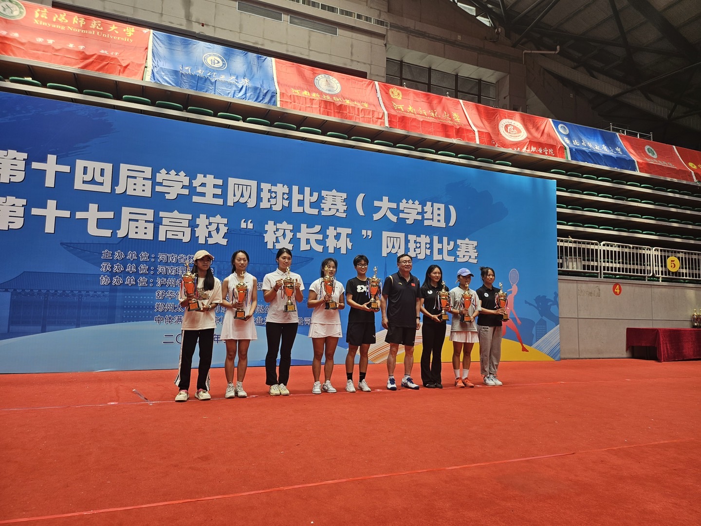 5月20-26日,由河南省教育厅主办,河南理工大学、郑州工程技术学院协办的河南省第十四届学生网球比赛(大学生组) 暨河南省高等学校第十七届“校长杯”网球比赛在河南理工大学成功举办。我校网球队获得女子甲组单打第二名、女子乙组团队第四名、男子乙组单打第五名以及男子乙组单打第七名的优异成绩。