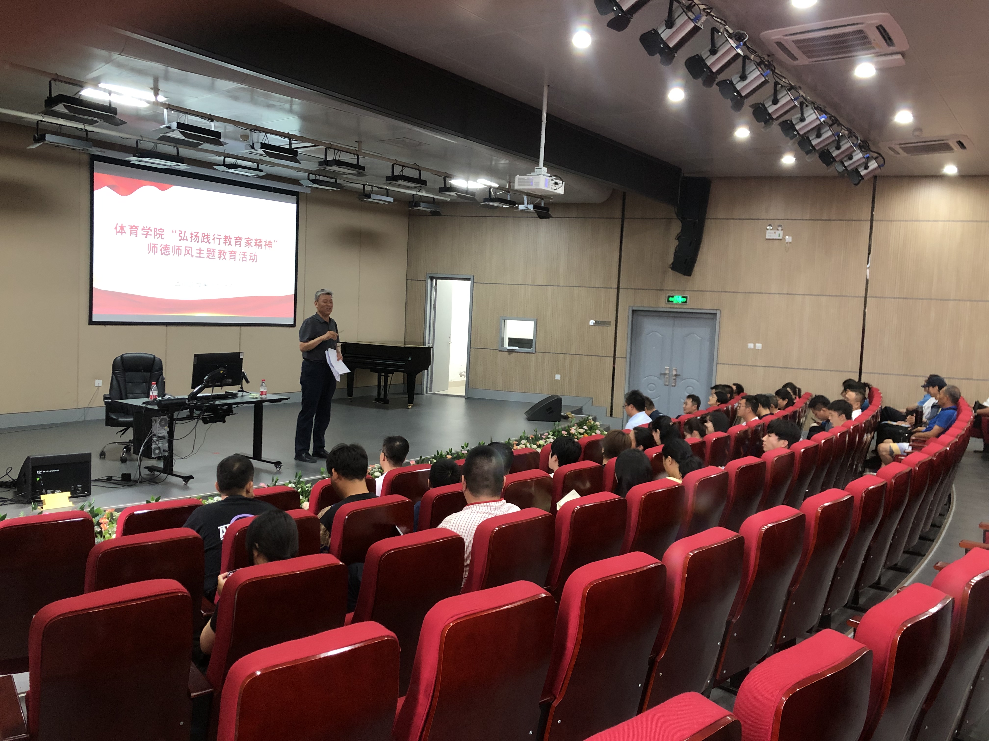 在体育馆音乐厅开展“弘扬践行教育家精神”师德师风主题教育,学院全体教职工参加。