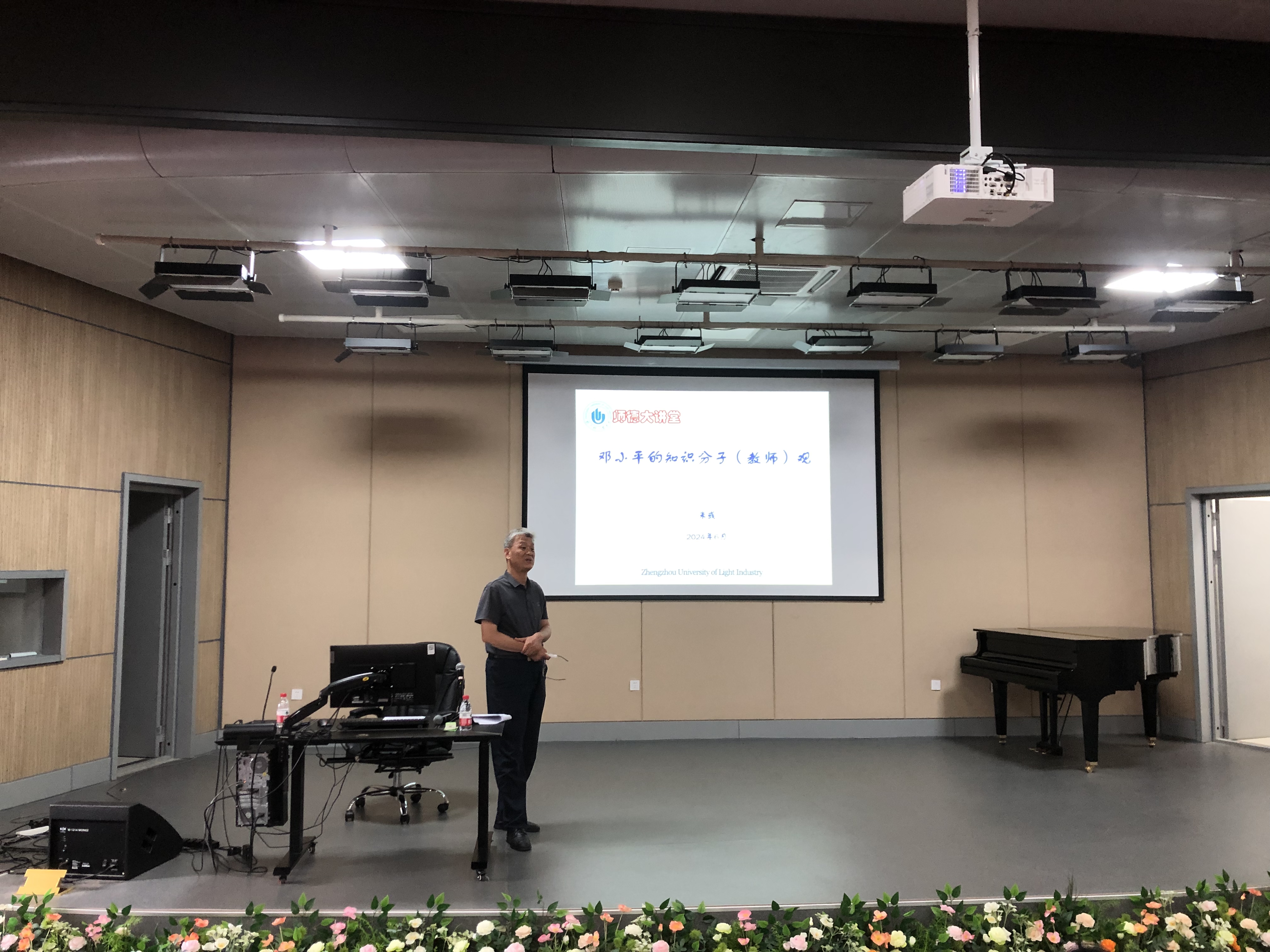 此次主题教育由学院党总支书记朱彧同志做“邓小平的知识分子(教师)观”专题讲座。朱彧同志从“从知识的视角看邓小平的主要经历”“邓小平关于知识分子(教师)的主要观点”“邓小平对知识、知识分子(教师)看法的特点”和邓小平知识分子观对师德建设的启示四个方面,深入浅出,阐明实事求是的作风、优良的师德、高尚的师风是搞好教育的灵魂,希望学院教师在为人处事上少一点名利之心,在教书育人上多一点因材施教,爱岗敬业,时刻树立良好的教师形象,不断增强教师教书育人的荣誉感和责任感。