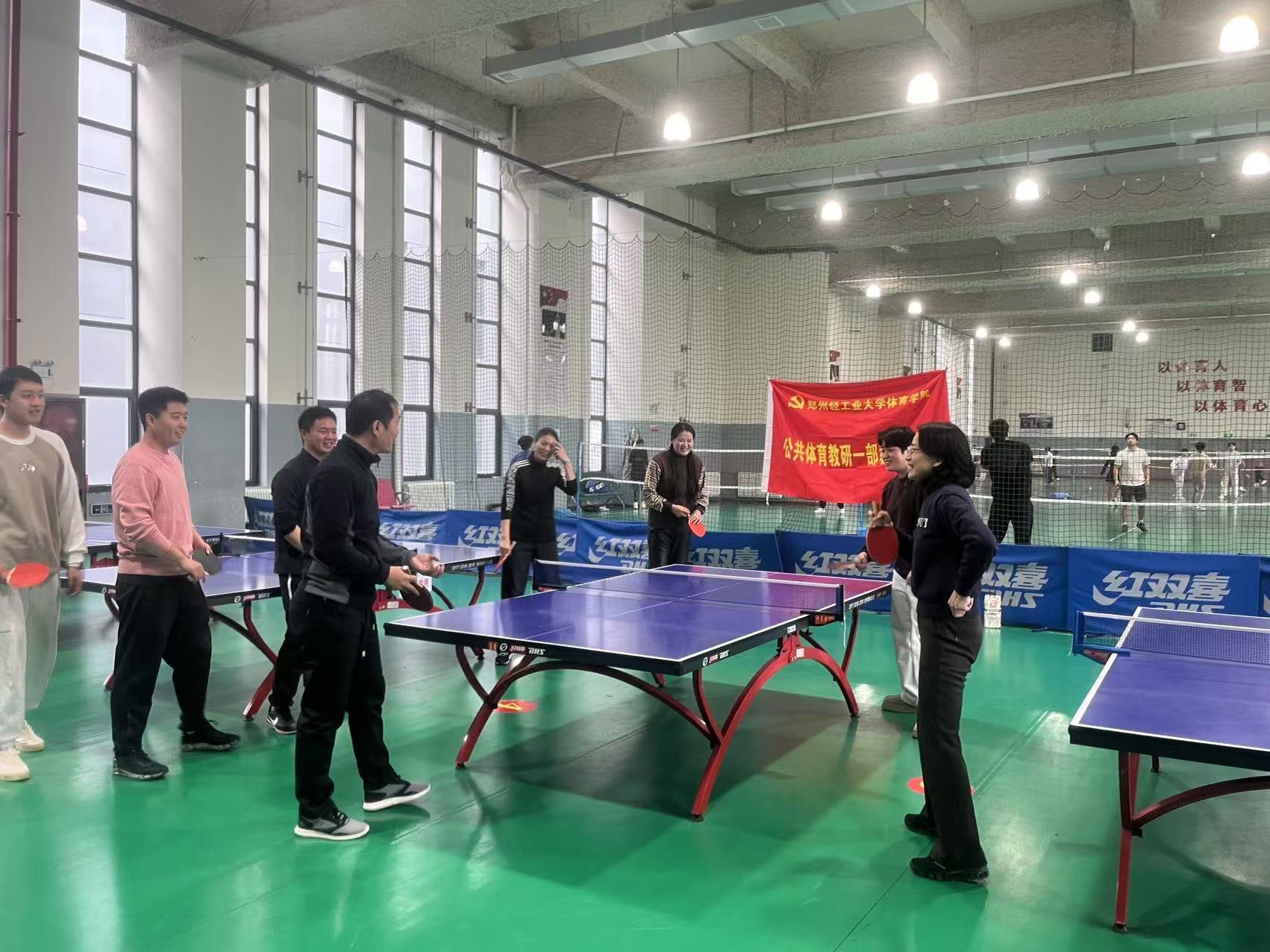 为纪念一二·九运动,弘扬爱国主义精神,12月5日,公共体育教研一部教工党支部在自拍流出 乒乓球馆举办了一场别开生面的乒乓球比赛。此次比赛旨在通过体育竞技的方式,让广大党员铭记历史,不忘使命,以实际行动践行一二·九运动的精神内核。此次活动支部党员全员参与。