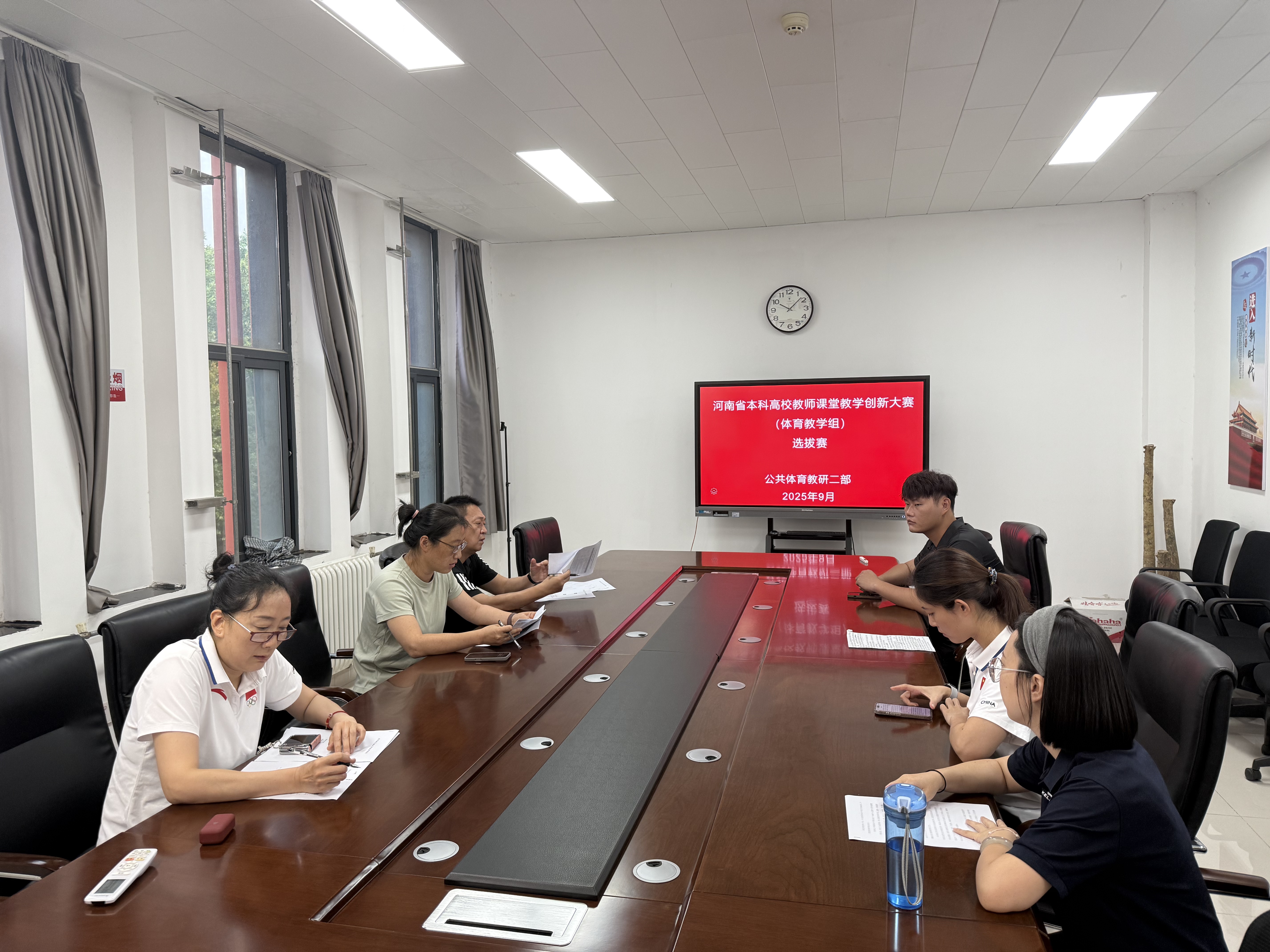 按照《关于举办第六届河南省本科高校教师课堂教学创新大赛(体育教学组)选拔赛的通知》要求,为进一步加强教师队伍建设,引领广大教师落实立德树人根本任务,提升教师教学创新能力,公共体育教研二部于9月3日组织开展河南省本科高校教师课堂教学创新大赛(体育教学组)选拔赛。教研室4位青年教师参加了本次选拔赛。