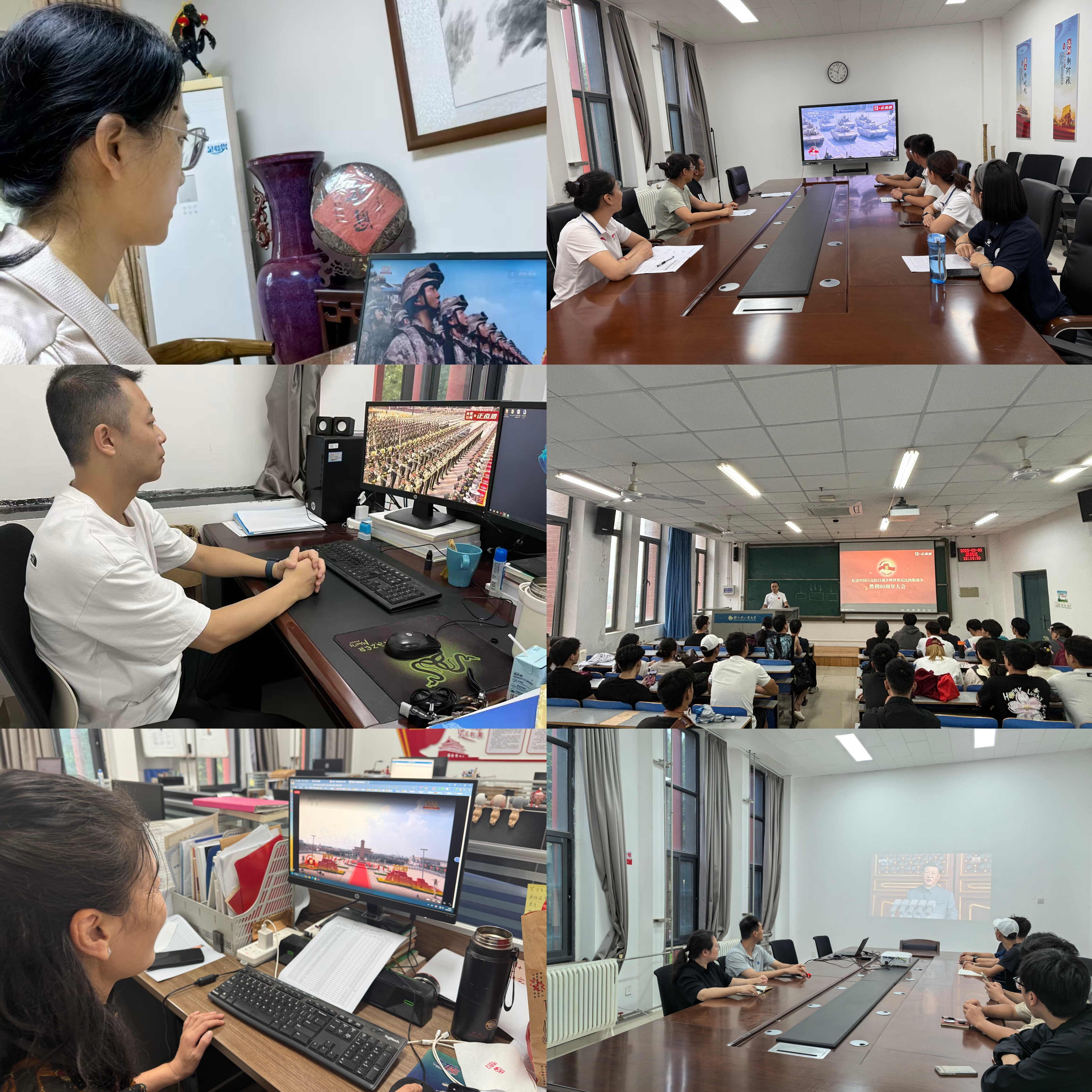 全体教师认真聆听了习近平总书记在大会上发表的重要讲话。阅兵仪式上,整齐划一的方阵、先进精良的装备依次亮相,老师们全神贯注,眼神中满是自豪与激动。