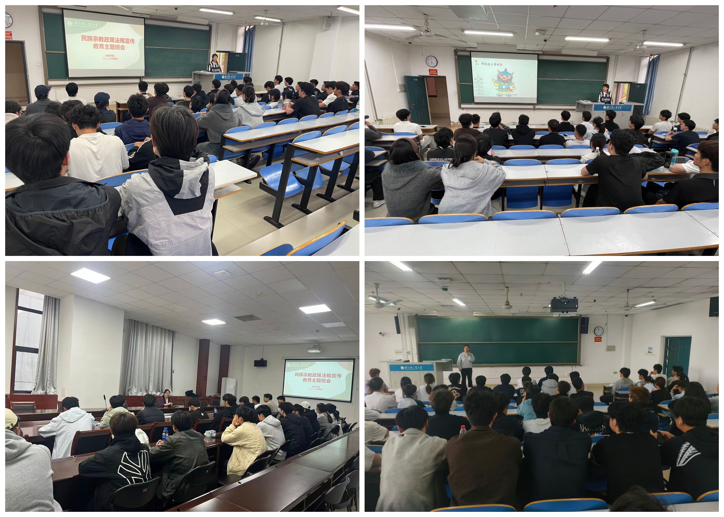 为进一步帮助青年学生准确把握党的宗教工作基本方针,扎实推进校园思想政治引领与民族团结进步教育,4月中旬,自拍流出 组织各班级召开民族宗教政策法规宣传教育主题班会。